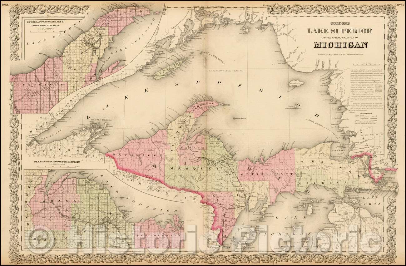 • .Historic Map - Colton's Lake Superior and the upper peninsula of Michigan, 1876, G.W. & C.B. Colton v1
