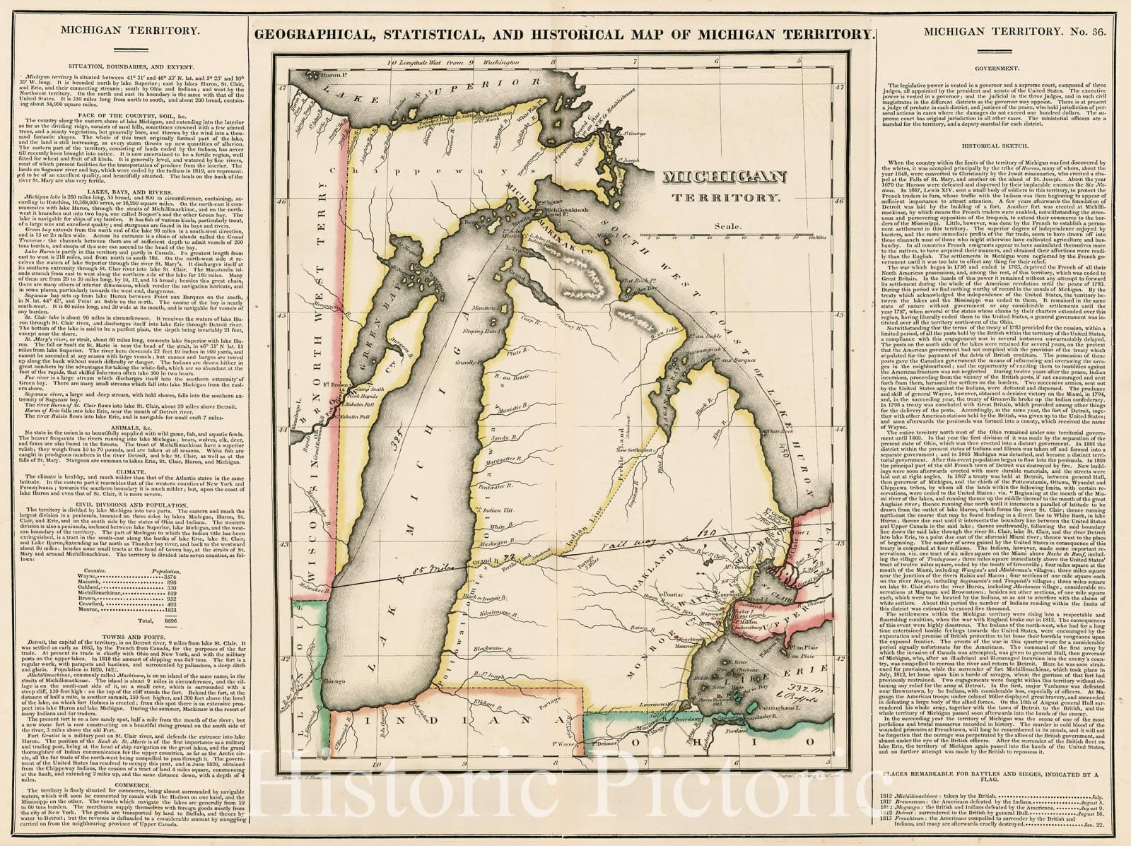Historic Map - Geographical, Statistical and Historical Map of Michigan Territory, 1823, Henry Charles Carey - Vintage Wall Art