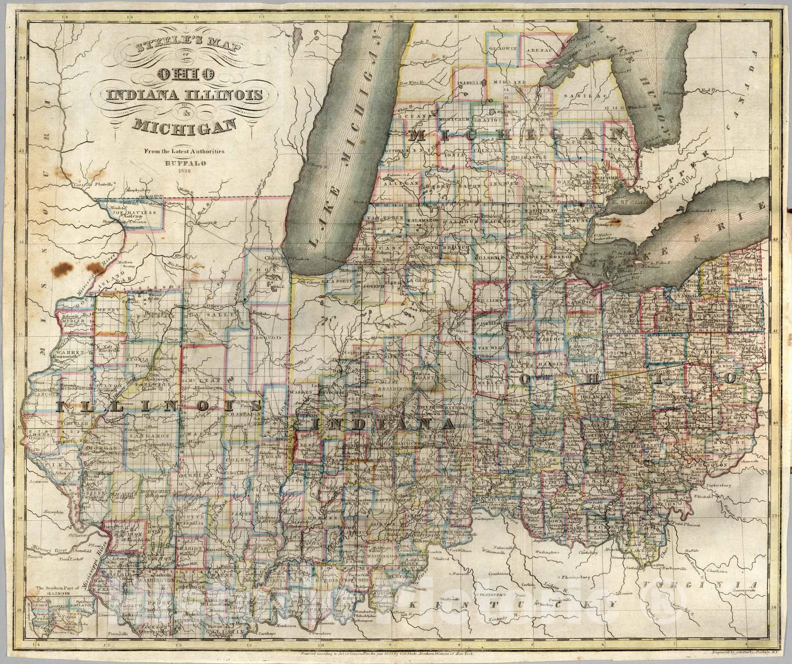 Guide Book - 1836 Steele's Map Of Ohio Indiana Illinois & Michigan