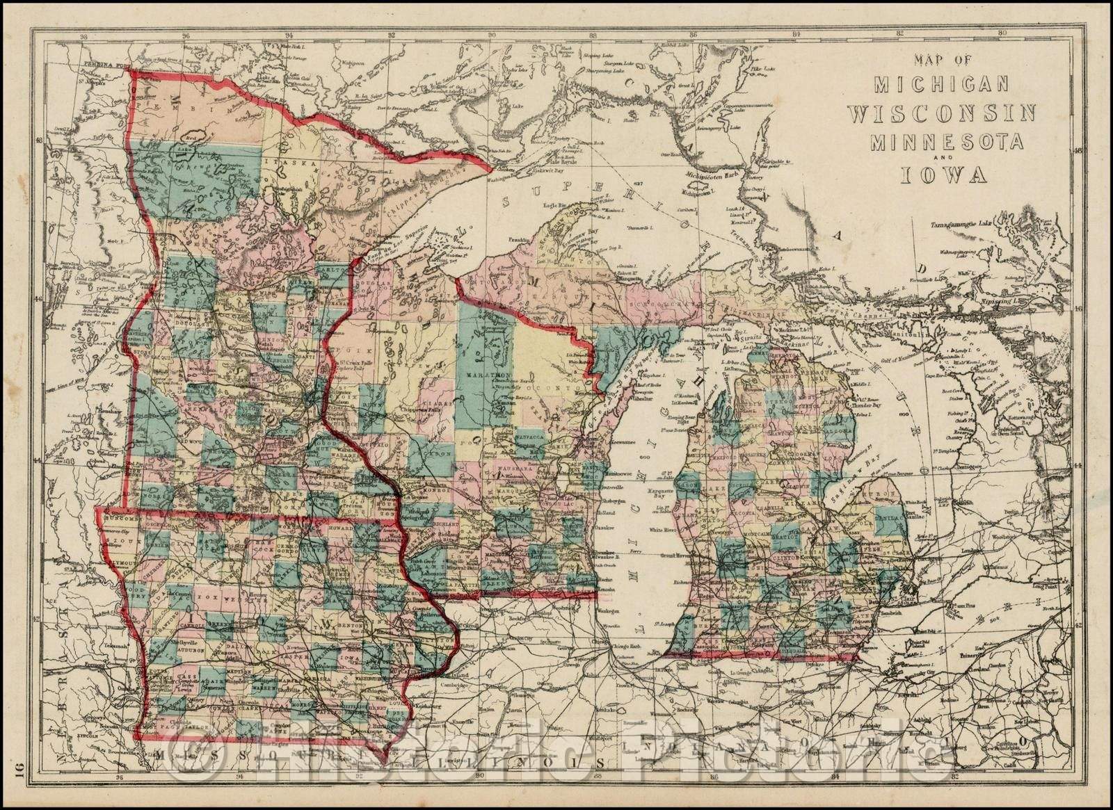 Map of Michigan, Wisconsin, Minnesota and Iowa, 1873, J. David Williams