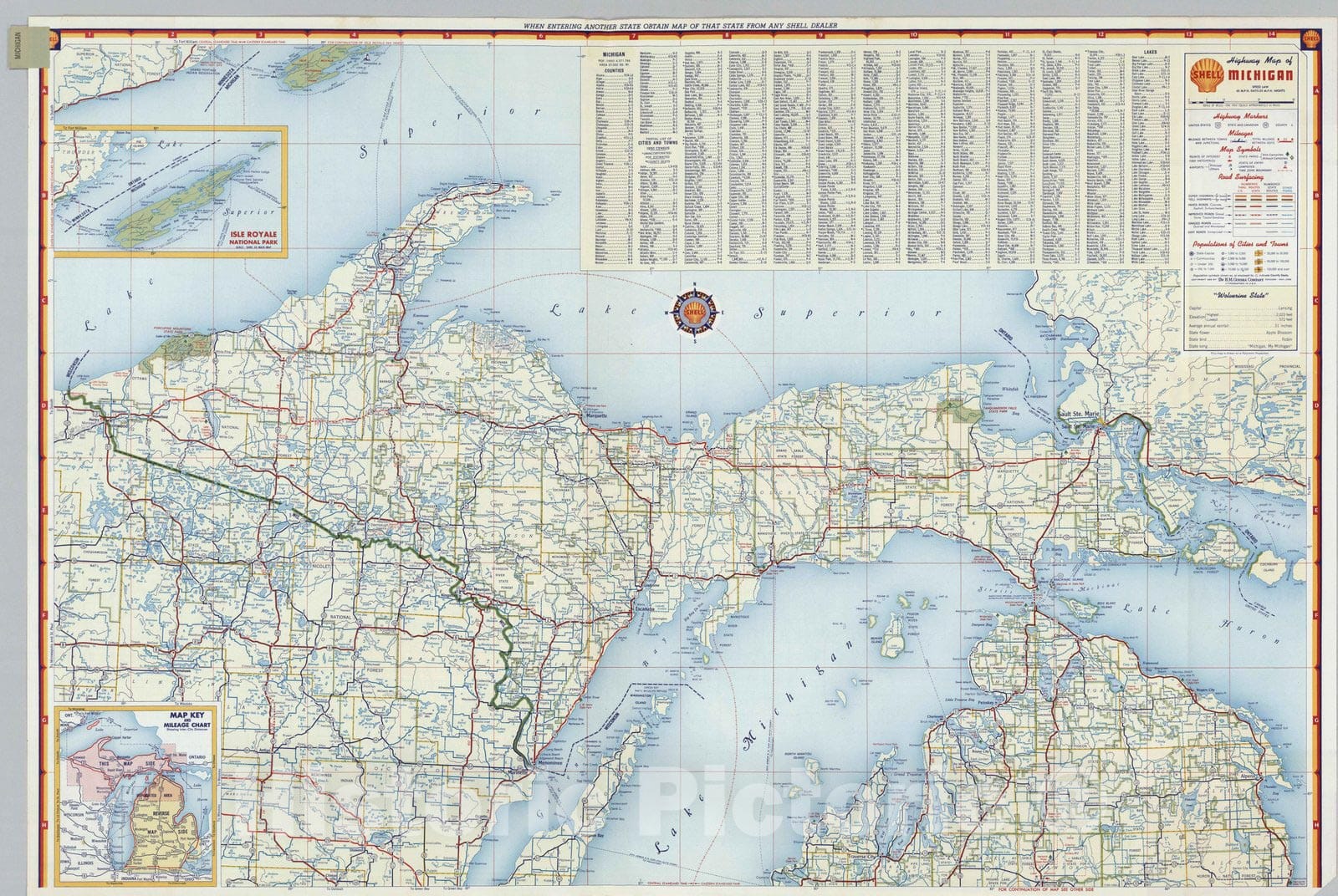 National Atlas - 1956 Shell Highway Map of Michigan (northern portion).