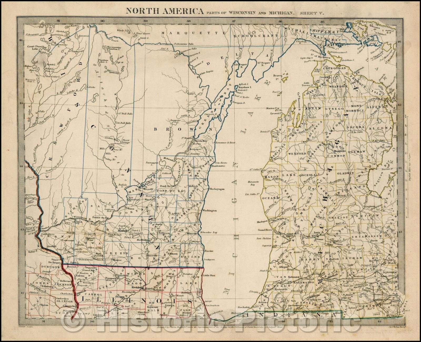 Historic Map - North America Parts Of Wisconsin And Michigan Sheet V, 1844, SDUK v1