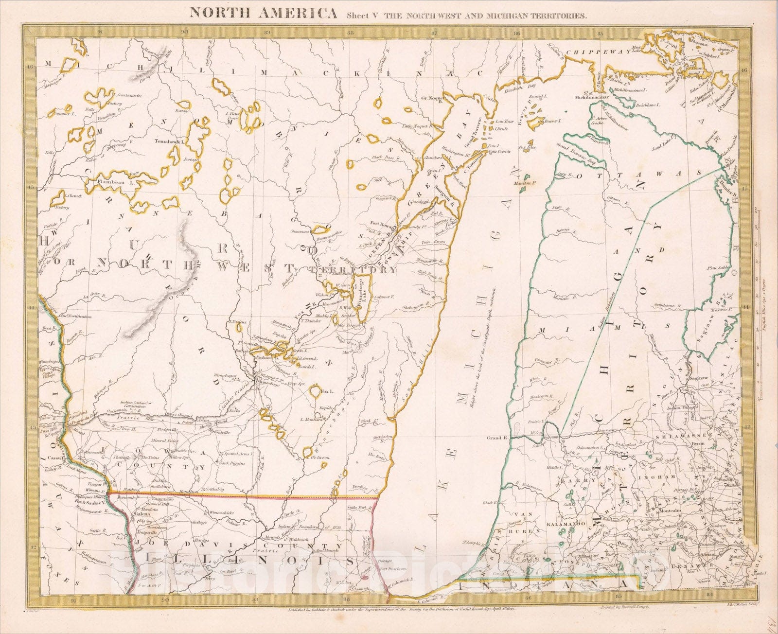Historic Map : North America Sheet V The North West and Michigan Territories, 1833, SDUK, Vintage Wall Art