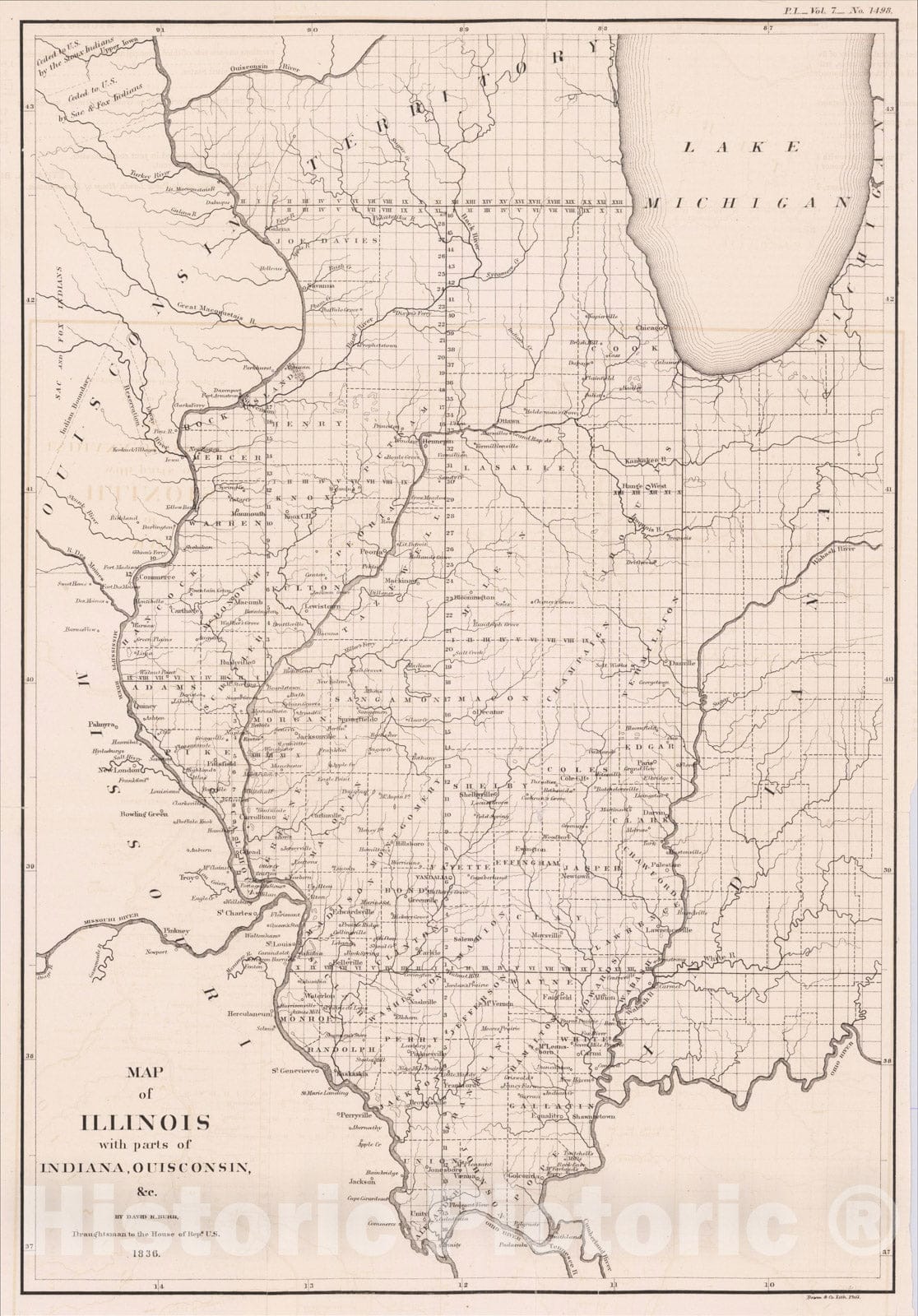 Historic Map : Map of the Northern parts of Ohio, Indiana and Illinois with Michigan, 1836, David Hugh Burr, v2, Vintage Wall Art