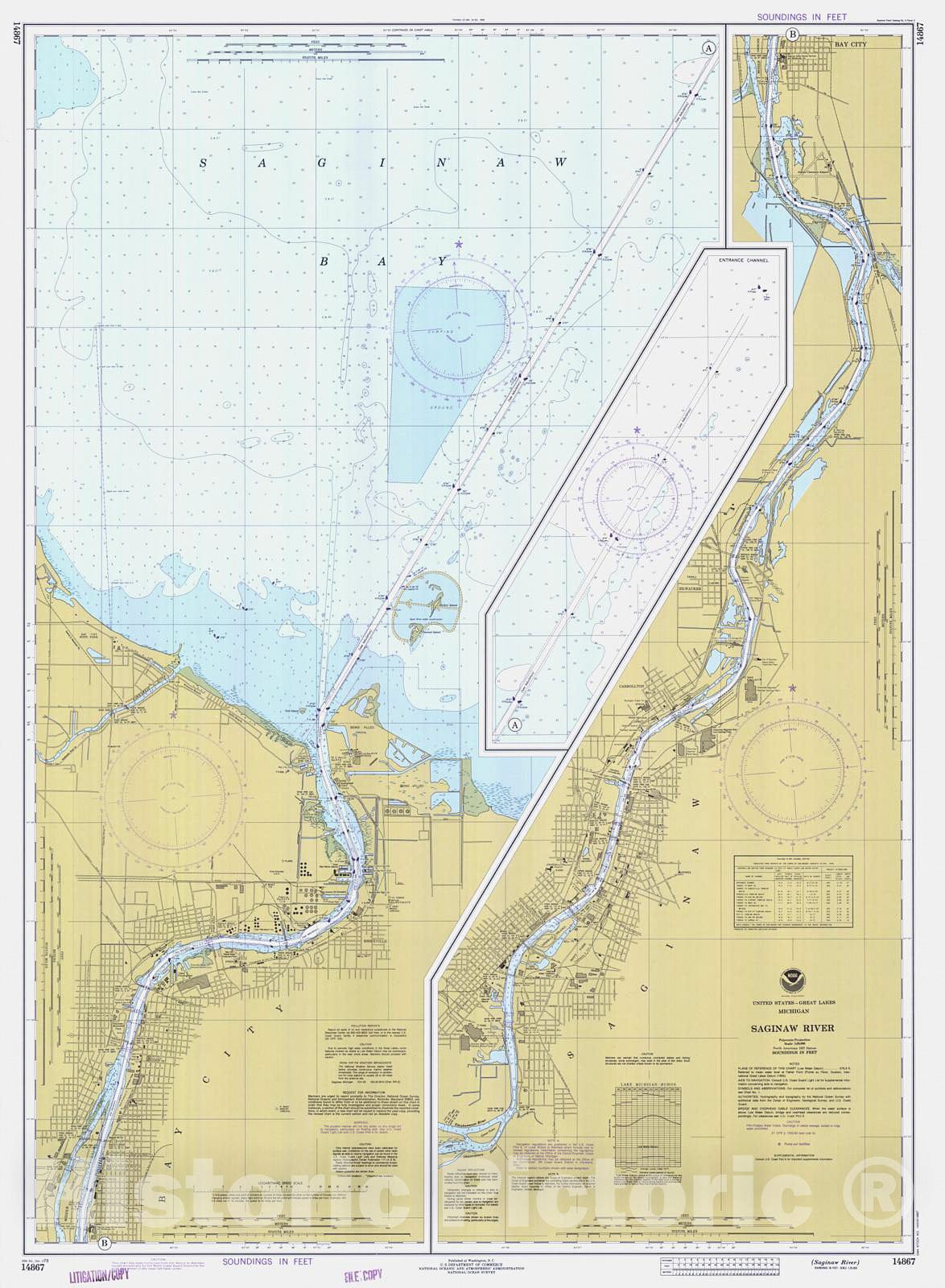 Historic Historic Nautical Map - Saginaw River, 1978 NOAA Chart - Michigan (MI) - Antique Vintage Decor Poster Wall Art Reproduction