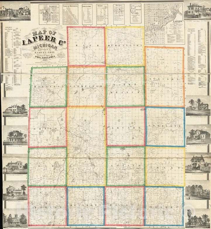 Historical Map, 1863 Map of Lapeer Co, Michigan, Vintage Wall Art
