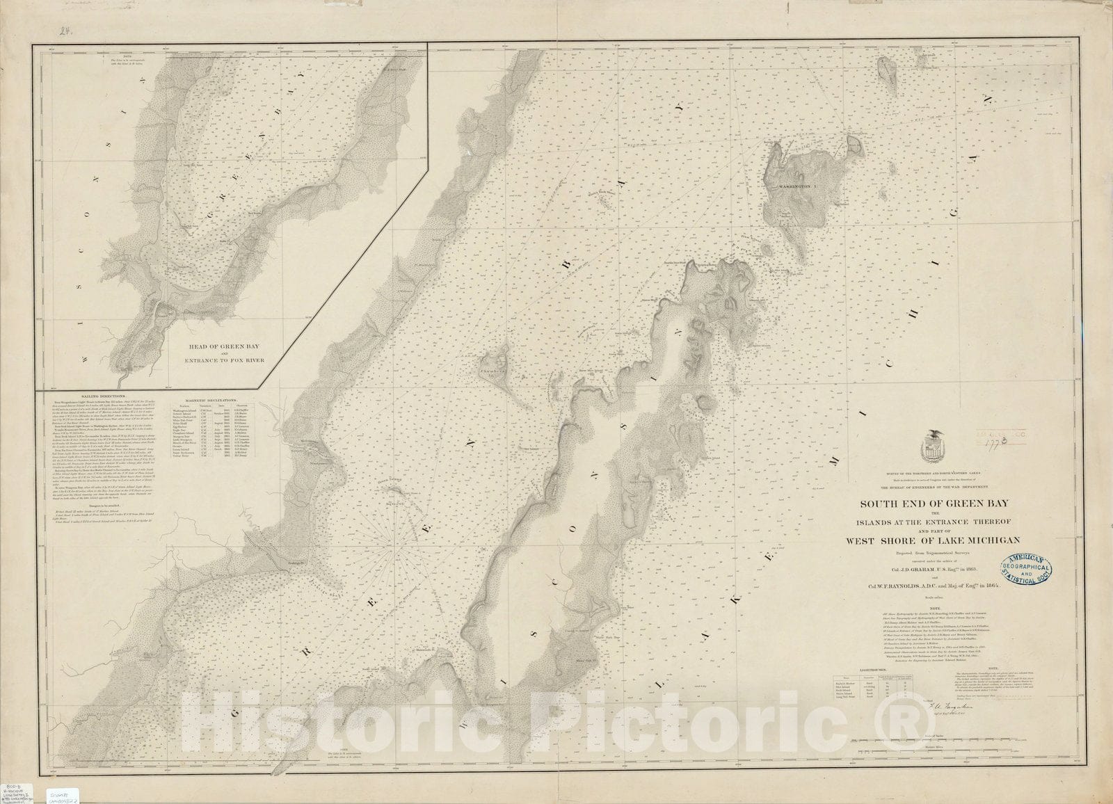 • .Map : Door County, Wisconsin 1864, South end of Green Bay, the islands at the entrance thereof and part of west shore of Lake Michigan, Antique Vintage Reproduction