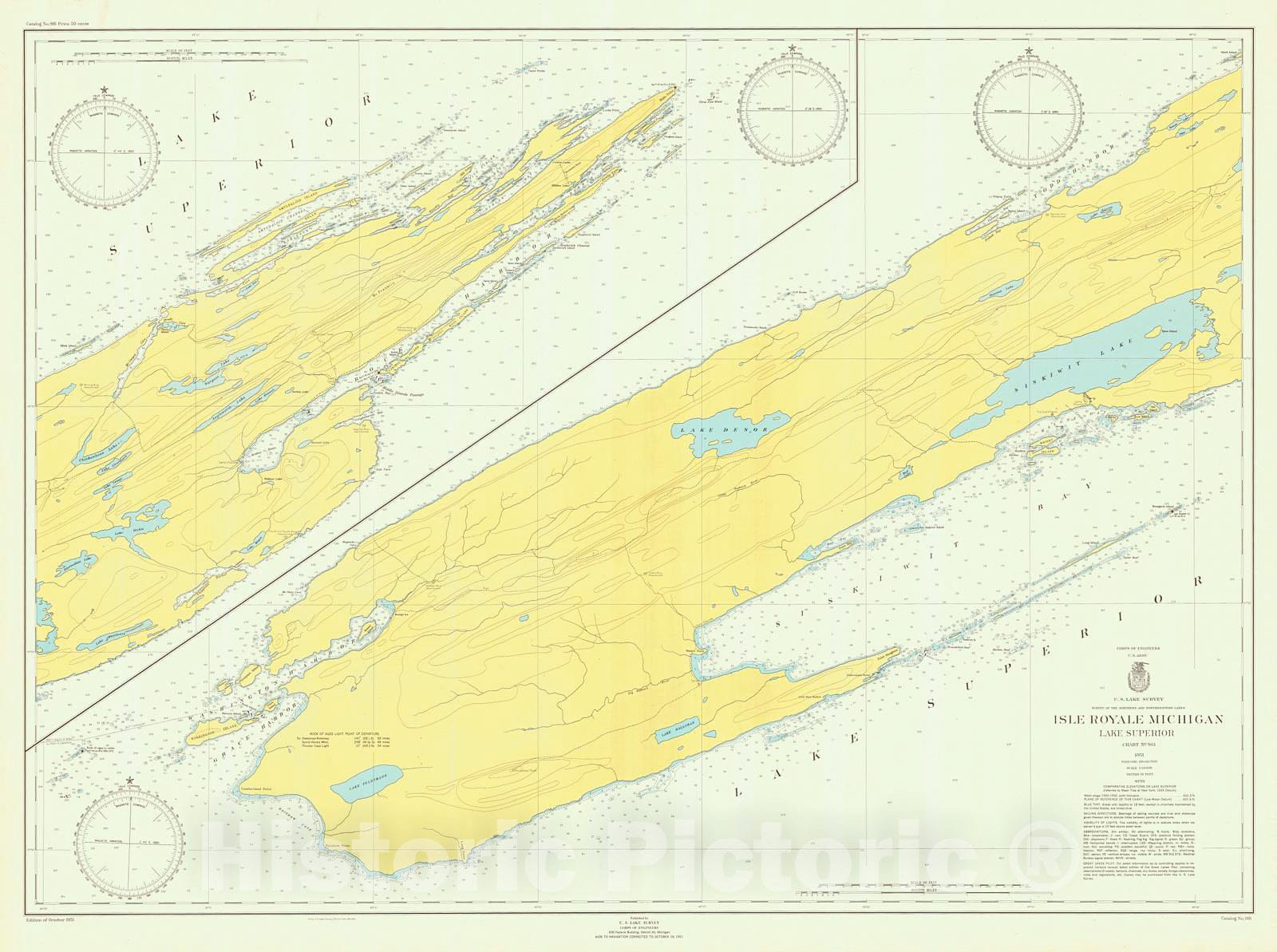 Historic Nautical Map - Isle Royale Michigan Lake Superior, 1951 NOAA Chart - Michigan (MI) - Vintage Wall Art