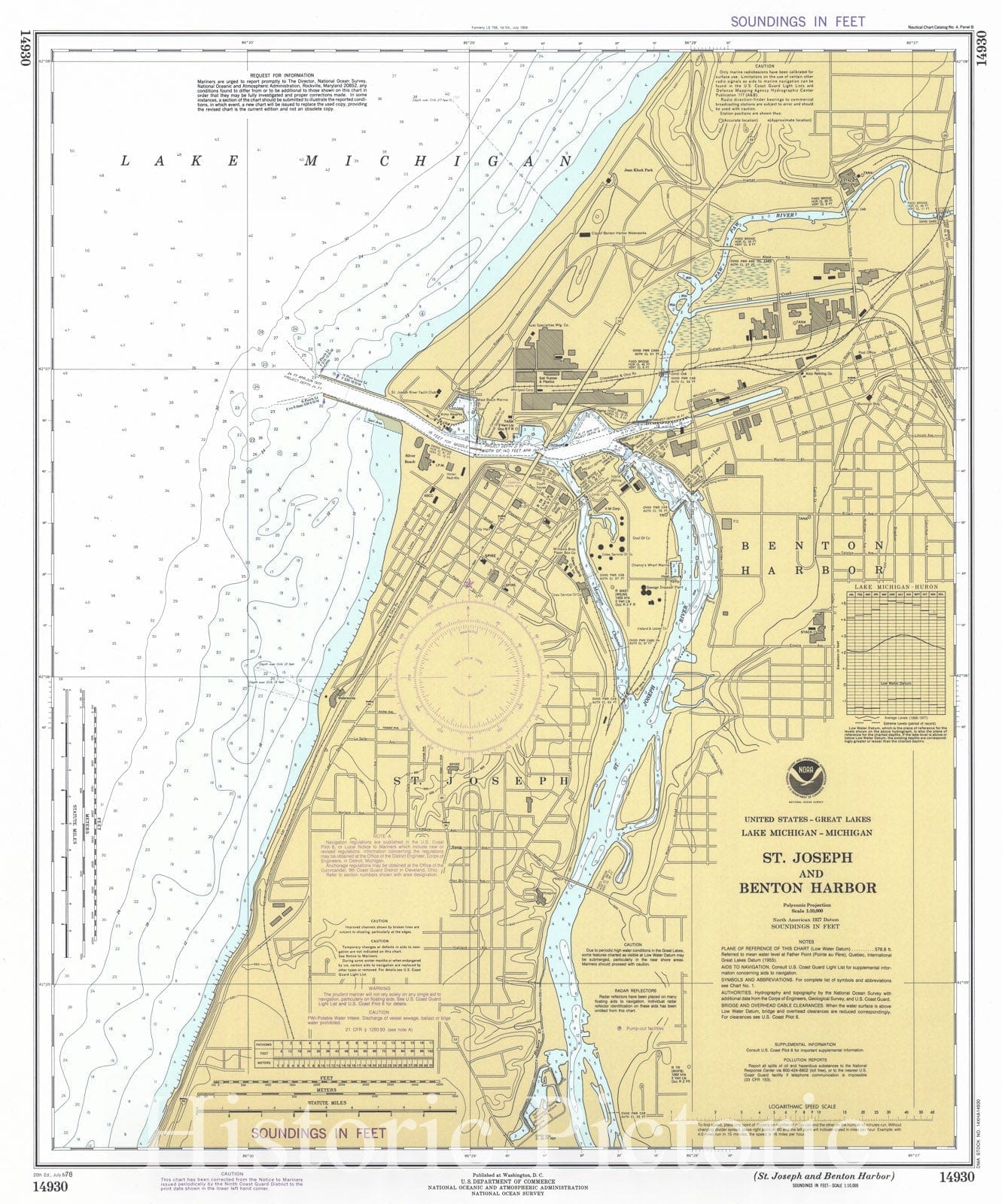 Historical St Joseph And Benton Harbor | 24in x 28in 1978 Nautical Chart | MI Vintage Map | Fine Art Reproduction Print