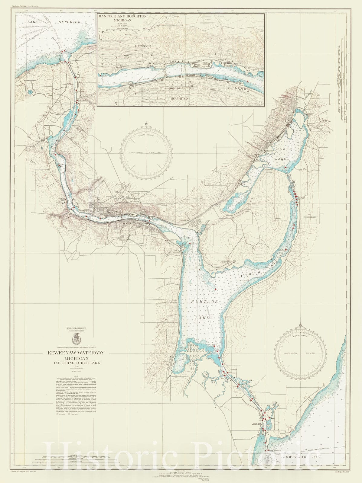• .Historic Nautical Map - Keweenaw Waterway Mchigan Including Torch Lake, 1940 NOAA Chart - Michigan (MI) - Vintage Wall Art