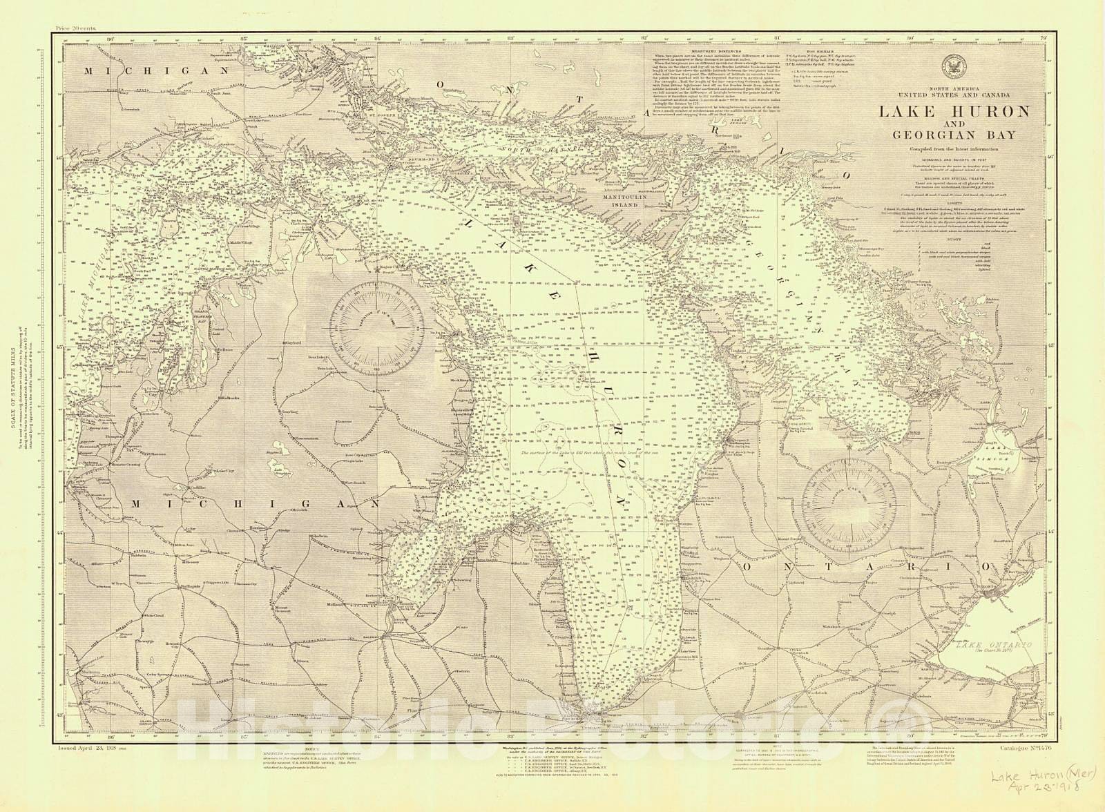 Historic Nautical Map - Lake Huron And Georgian Bay, 1918 NOAA Chart - Michigan (MI) - Vintage Wall Art