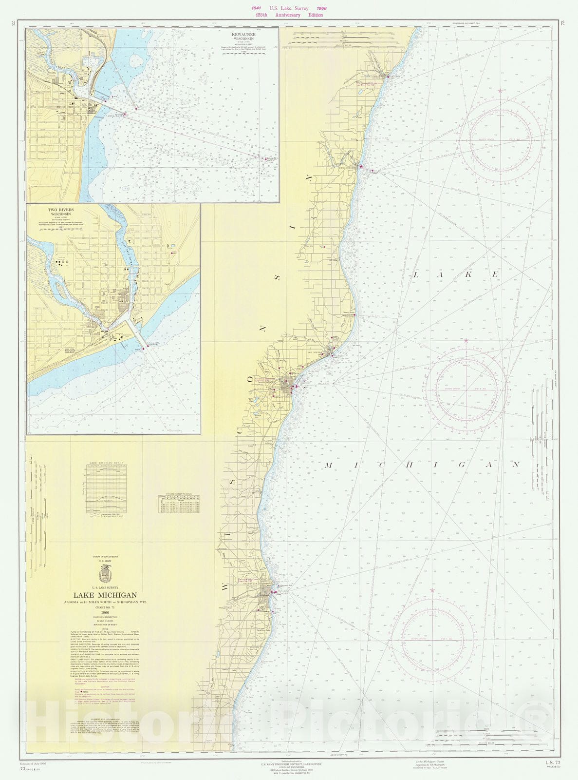 • Historic Nautical Map - Lake Michigan Coast Algoma To Sheboygan, 1966 NOAA Chart - Vintage Wall Art