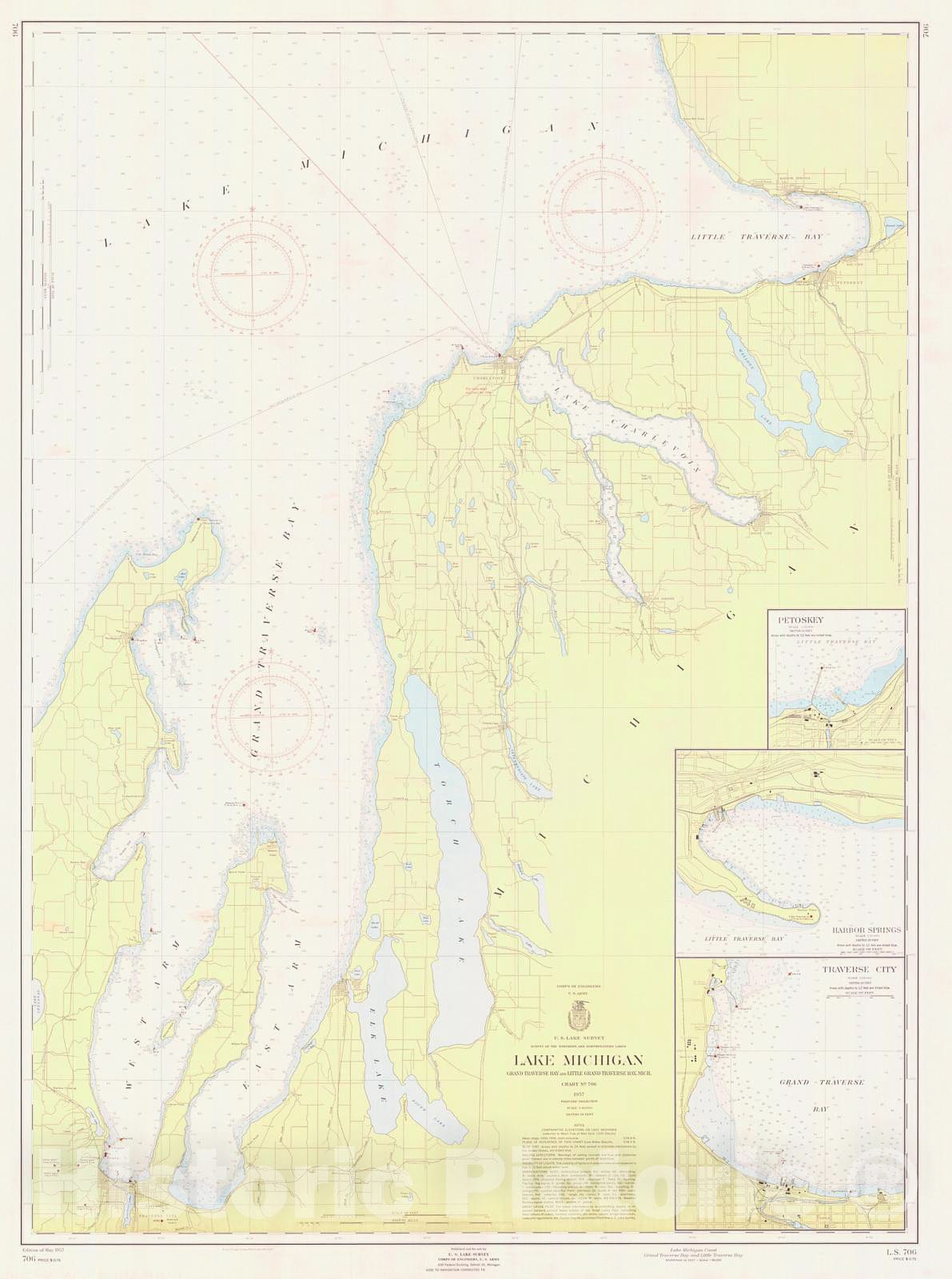 Historic Nautical Map - Lake Michigan Coast Grand Traverse Bay And Little Traverse Bay, 1957 NOAA Chart - Michigan (MI) - Vintage Wall Art