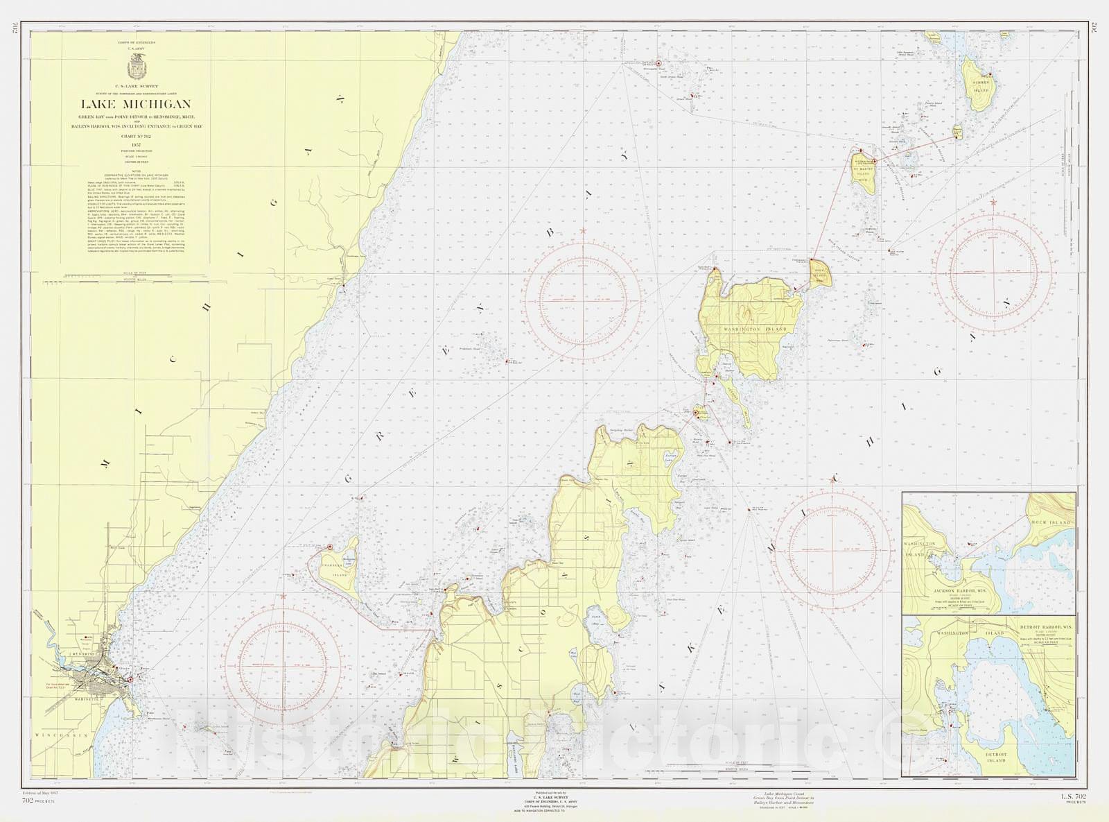 Historic Nautical Map - Lake Michigan Coast Green Bay From Point Detour To Baileys Harbor And Menominee, 1957 NOAA Chart - Wisconsin, Michigan (WI, MI) - Vintage Decor Poster Wall Art Reproduction - 0