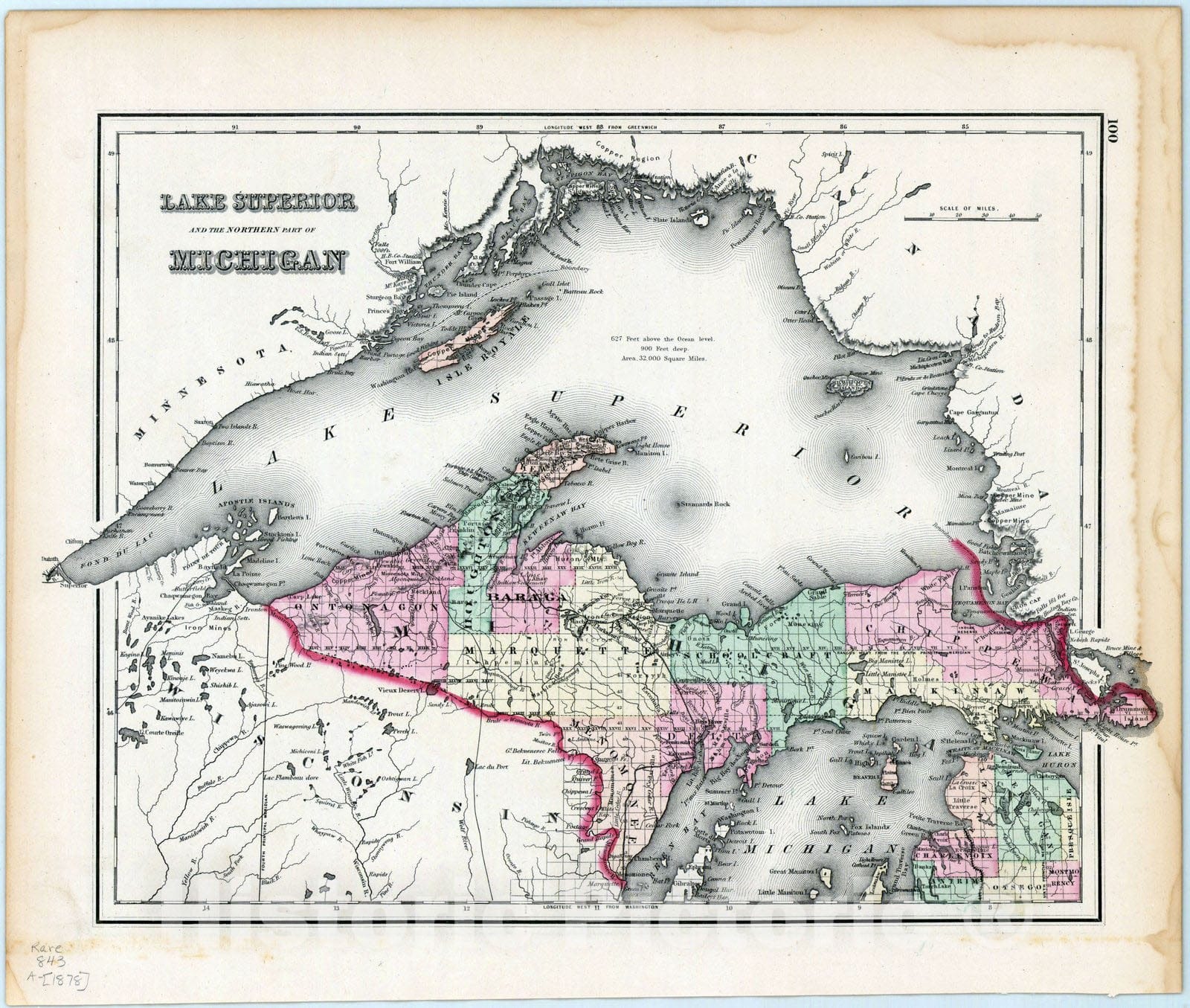 Map : Lake Superior 1878, Lake Superior and the northern part of Michigan, Antique Vintage Reproduction