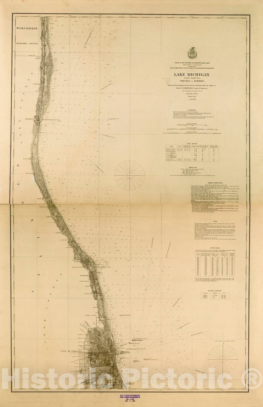 Map : Lake Survey Charts, Lake Michigan coast chart no. 4 Chicago to Kenosha, Antique Vintage Reproduction