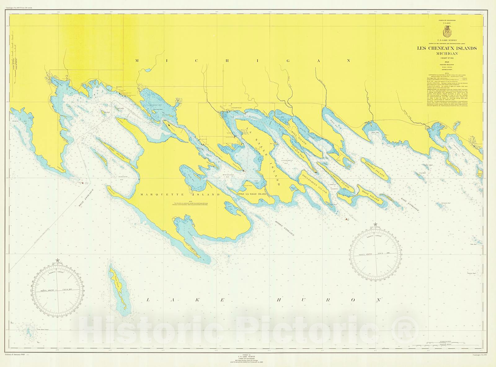• .Historic Nautical Map - Les Cheneaux Islands, 1949 NOAA Chart - Michigan (MI) - Vintage Wall Art