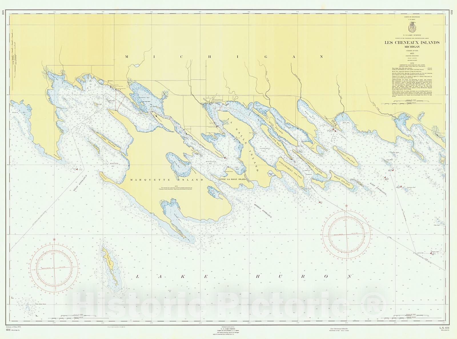 Historic Nautical Map - Les Cheneaux Islands, 1955 NOAA Chart - Michigan (MI) - Vintage Wall Art