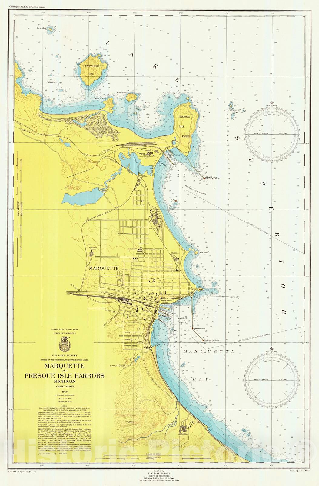 Historic Nautical Map - Marquette And Presque Isle Harbors, 1948 NOAA Chart - Michigan (MI) - Vintage Wall Art