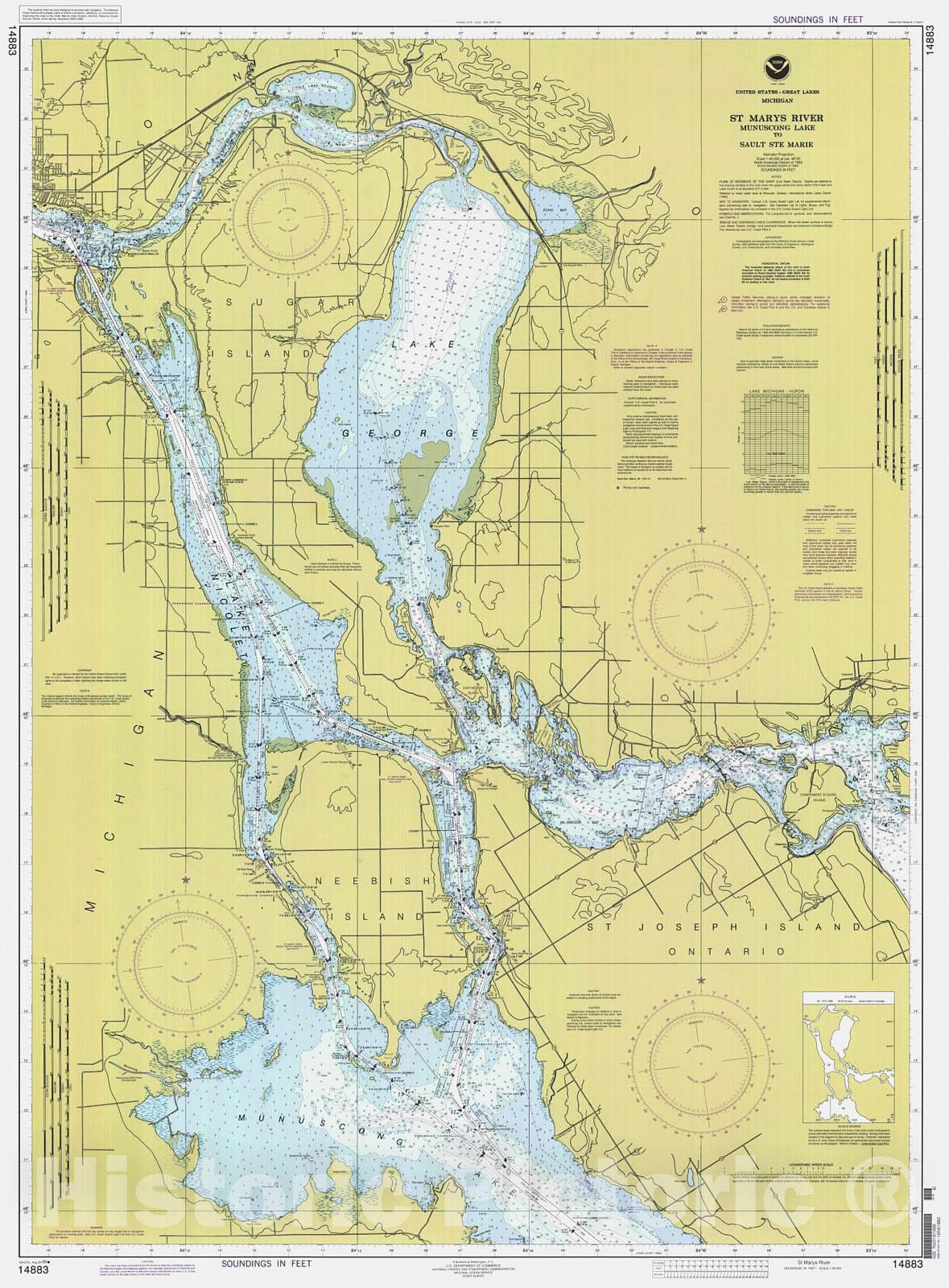 Historic Nautical Map - St Marys River - Munuscong Lake Ti Sault Ste. Marie, 1999 NOAA Chart - Michigan (MI) - Vintage Wall Art