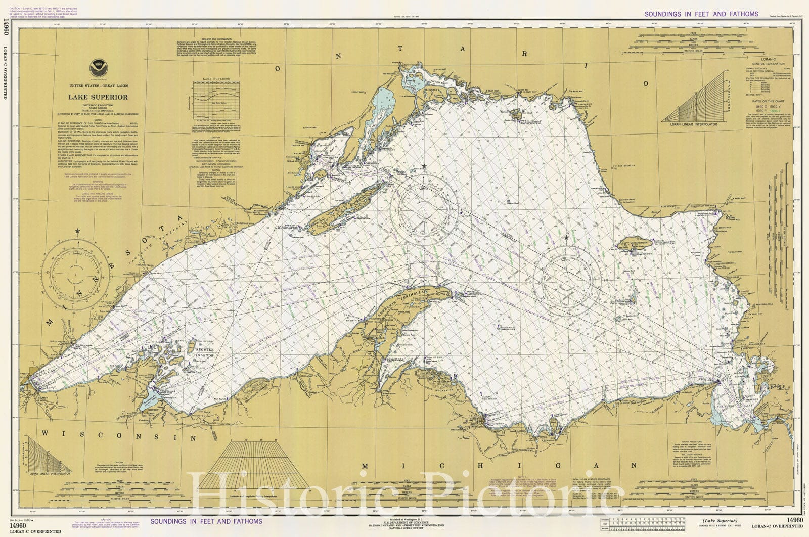 Historical Lake Superior | 24in x 15in 1980 Nautical Chart | MN, WI, MI Vintage Map | Fine Art Reproduction Print