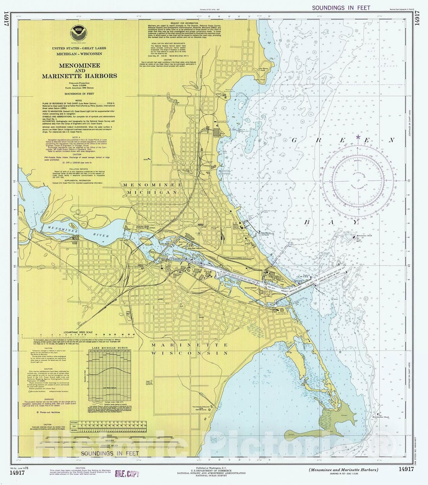 Historic Nautical Map - Menominee And Marinette Harbors, 1978 NOAA Chart - Michigan, Wisconsin (MI, WI) - Vintage Wall Art