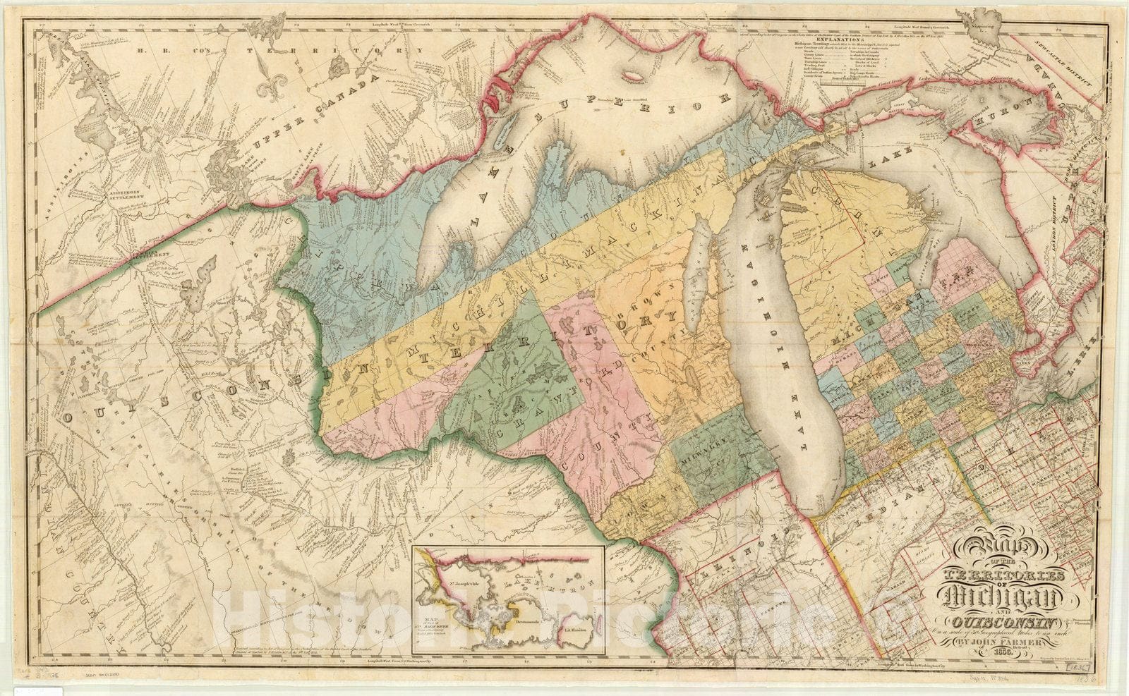 Map : Michigan, Wisconsin and Minnesota 1836, Improved map of the territories of Michigan and Ouisconsin, pronounced Wisconsin 1836 , Antique Vintage Reproduction