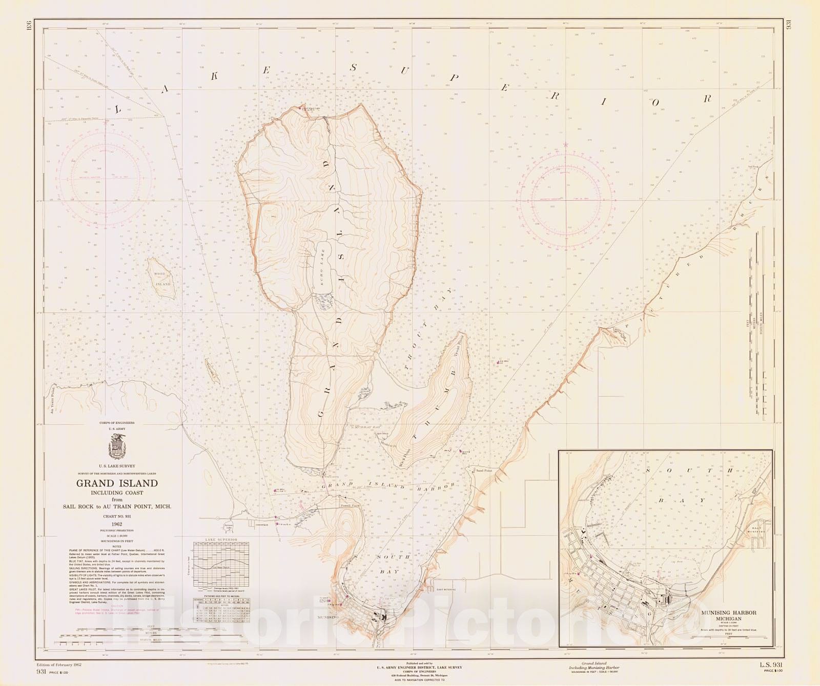 • .Historic Nautical Map - Munising Harbor And Grand Island, 1962 NOAA Chart - Michigan (MI) - Vintage Wall Art
