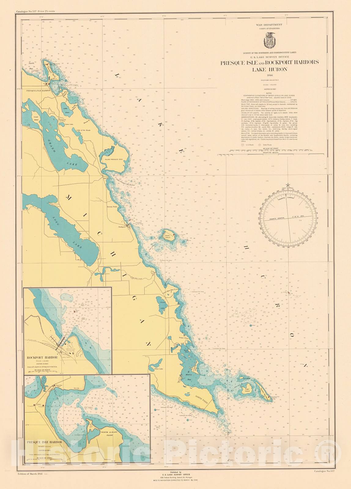 Historic Nautical Map - Presque Isle And Rockport Harbors Lake Huron, 1946 NOAA Chart - Michigan (MI) - Vintage Wall Art