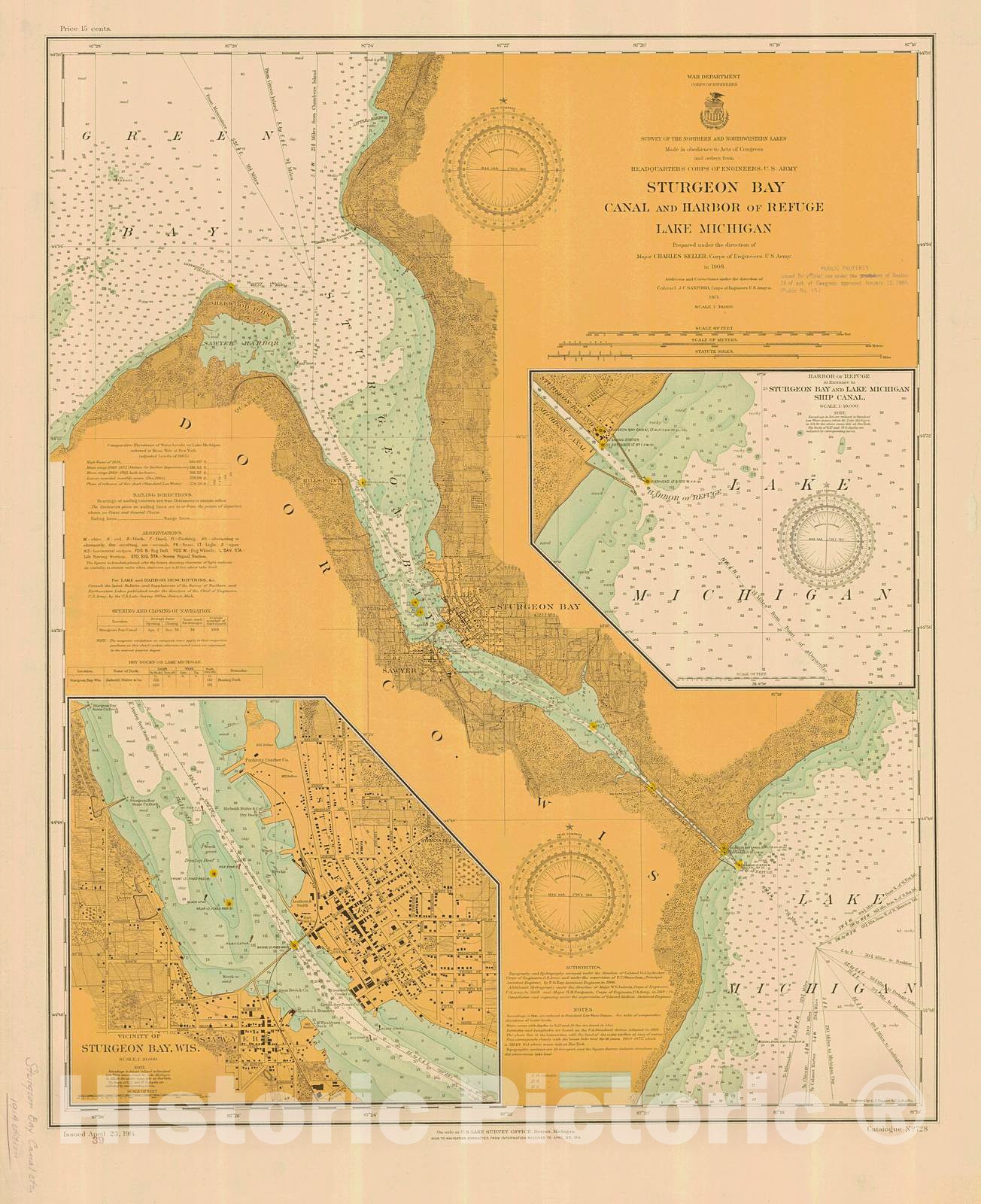 Historic Nautical Map - Sturgeon Bay, Canal And Harbor Of Refuge, Lake Michigan, 1914 NOAA Chart - Wisconsin (WI) - Vintage Wall Art
