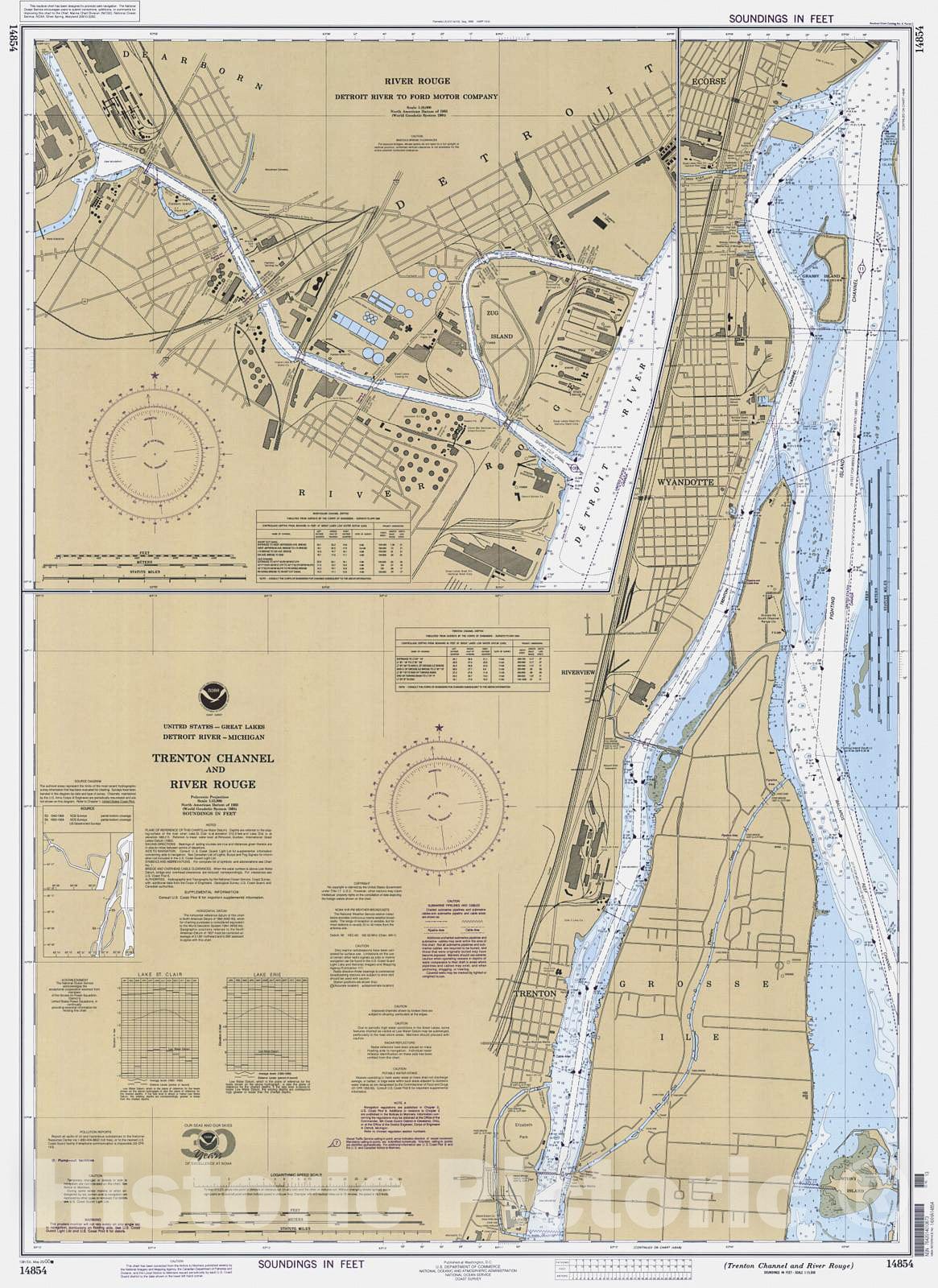 • .Historic Nautical Map - Trenton Channel And River Rouge, 2000 NOAA Chart - Michigan (MI) - Vintage Wall Art