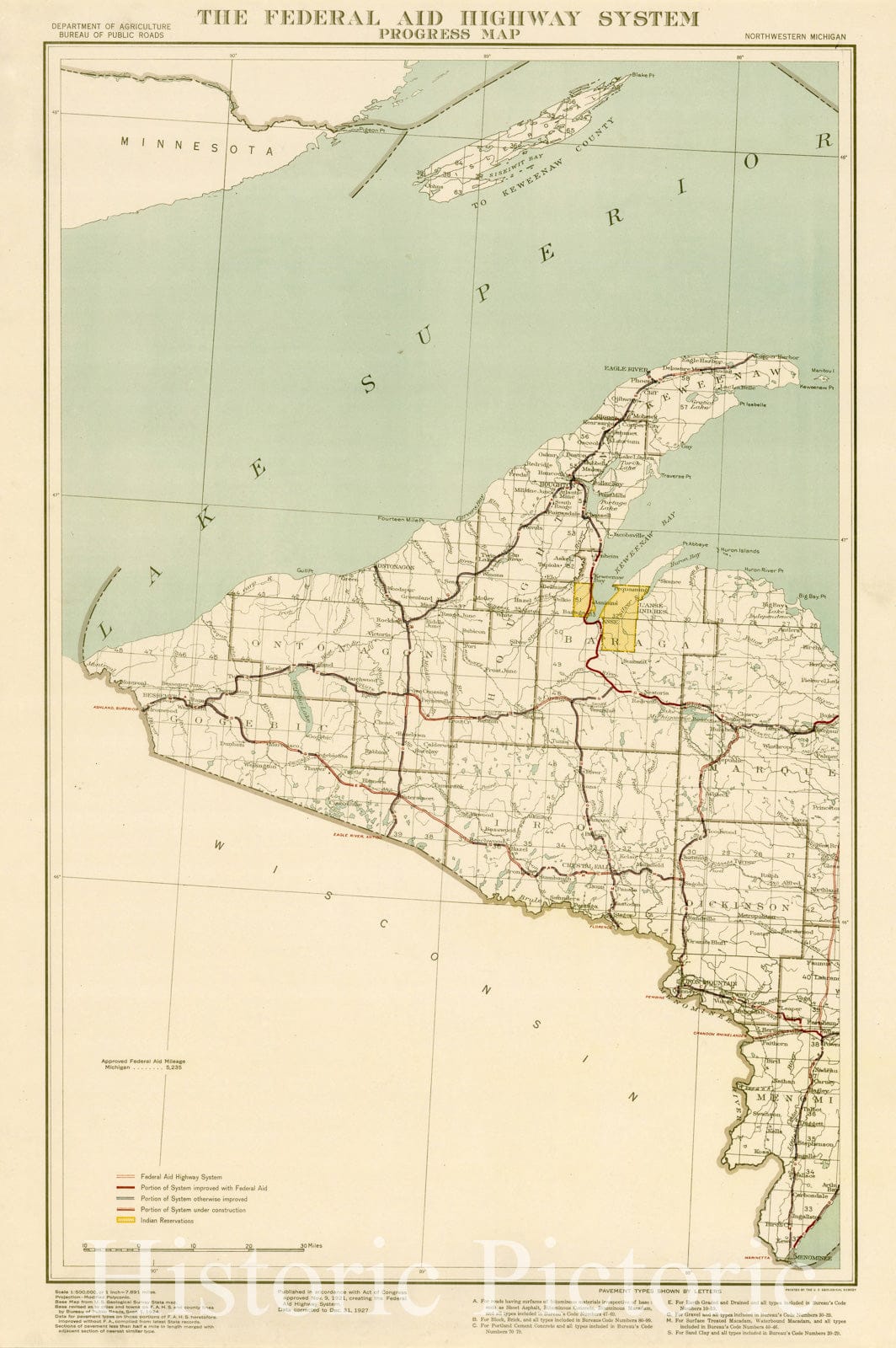 Map : Upper Peninsula, Michigan 1928, The federal aid highway system progress map, ... Michigan, Antique Vintage Reproduction