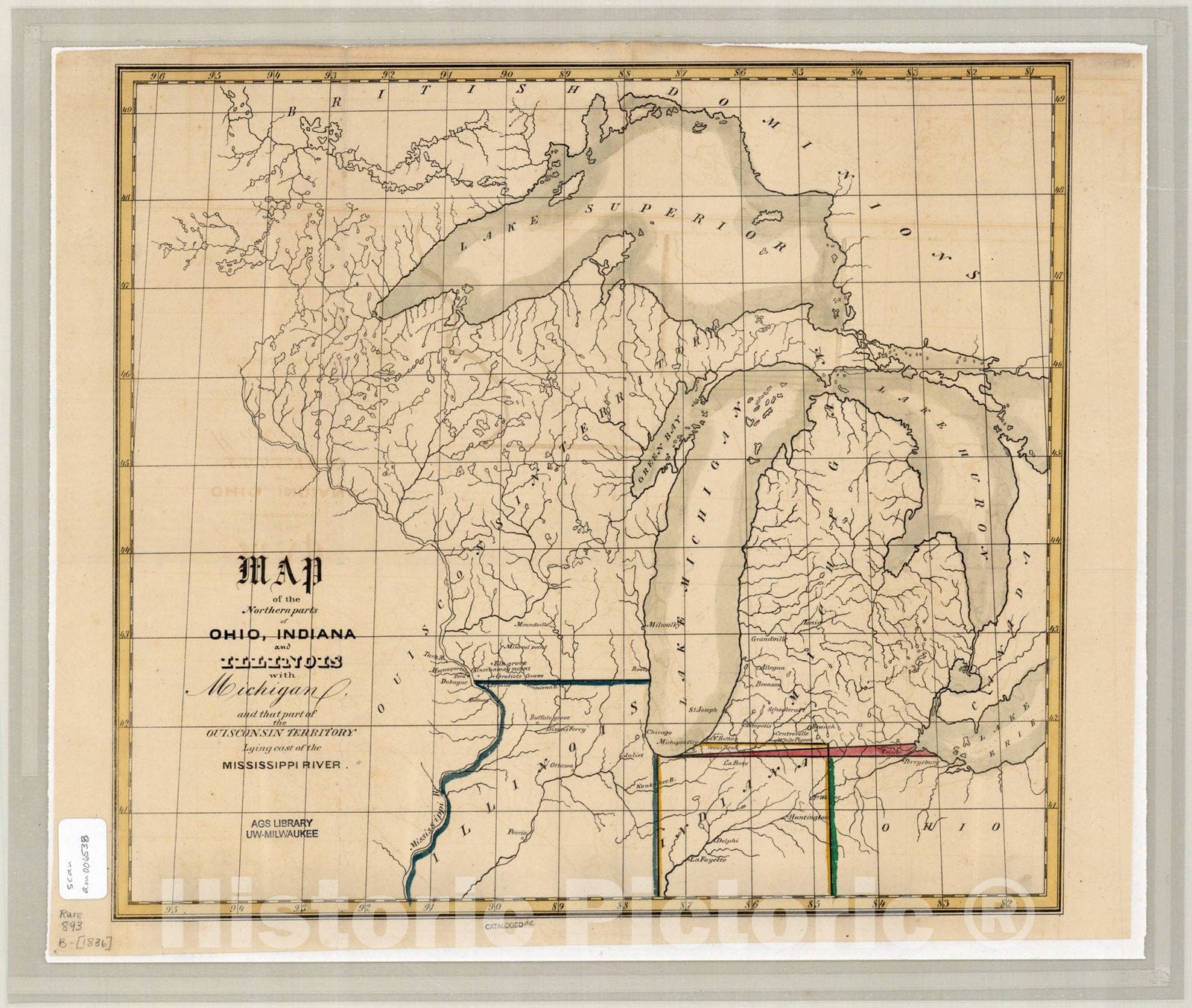 Map of the northern parts of Ohio, Indiana and Illinois with Michigan and that part of the Ouisconsin territory lying east of the Mississippi River