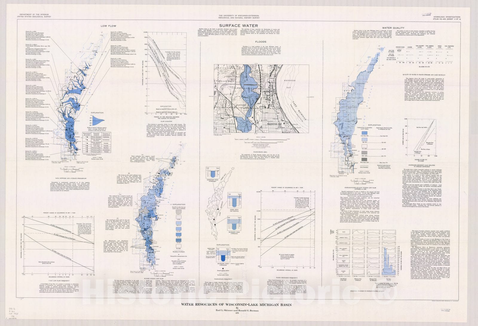 Map : Wisconsin 1973 5, Water resources of Wisconsin, Lake Michigan Basin , Antique Vintage Reproduction