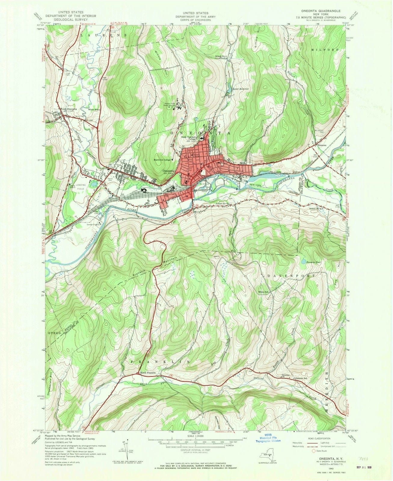 1943 Oneonta, NY - New York - USGS Topographic Map