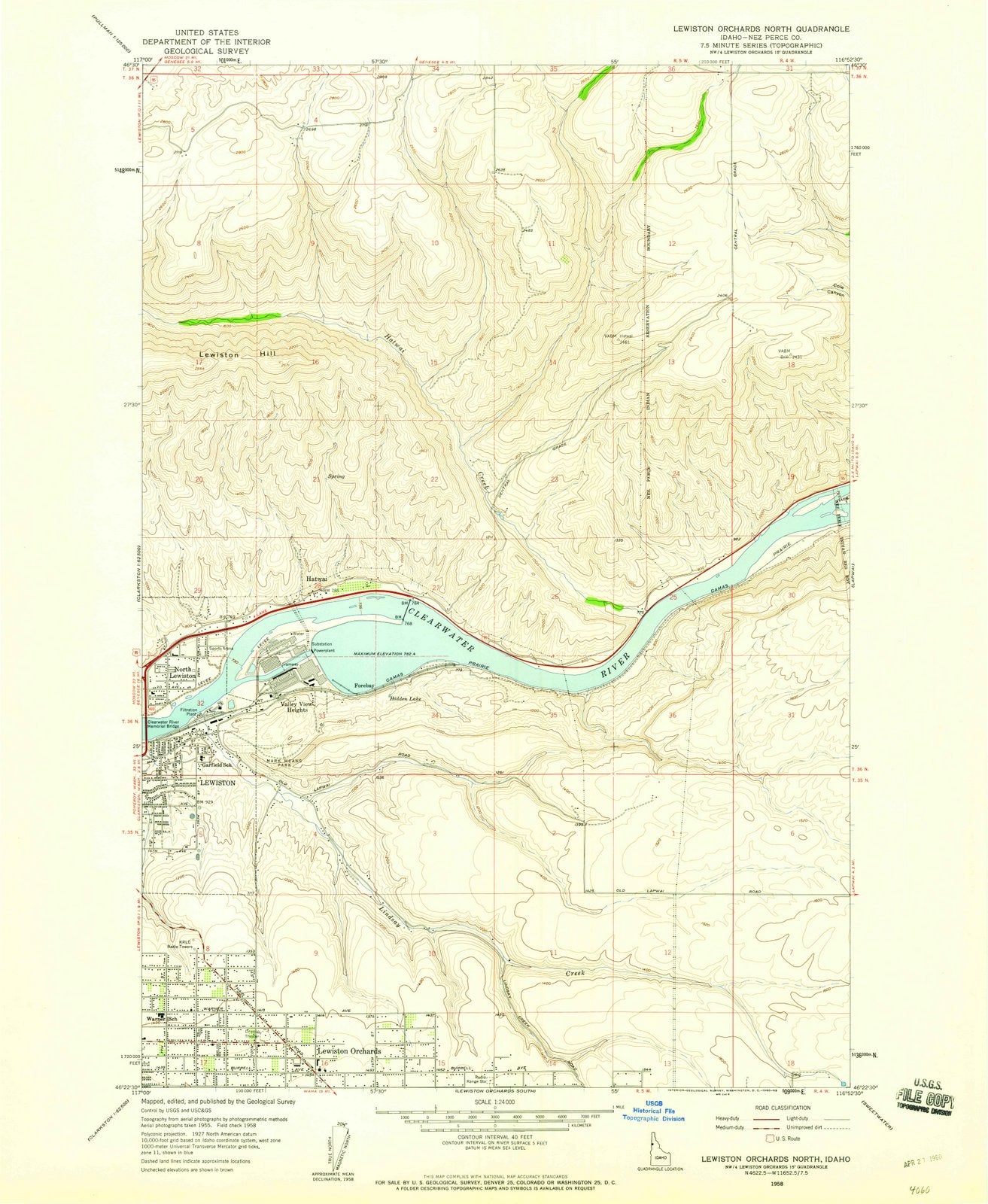 1958 Lewiston Orchards North, ID - Idaho - USGS Topographic Map