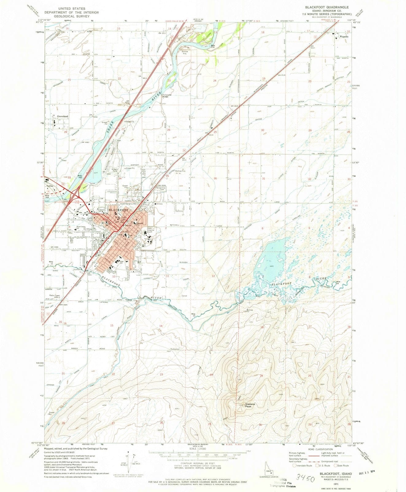 • 1971 Blackfoot, ID - Idaho - USGS Topographic Map