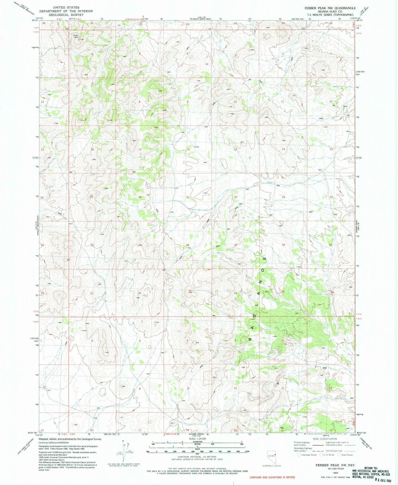 • .1982 Ferber Peak, NV - Nevada - USGS Topographic Map v3