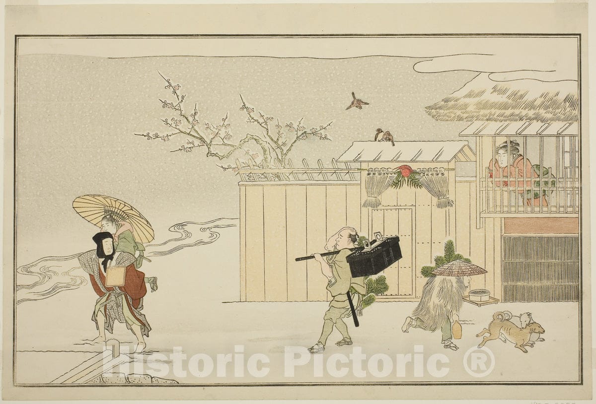 Delivering New Year Gifts in the Snow, from the illustrated kyoka anthology "The Young God Ebisu (Waka Ebisu)" Kitagawa Utamaro