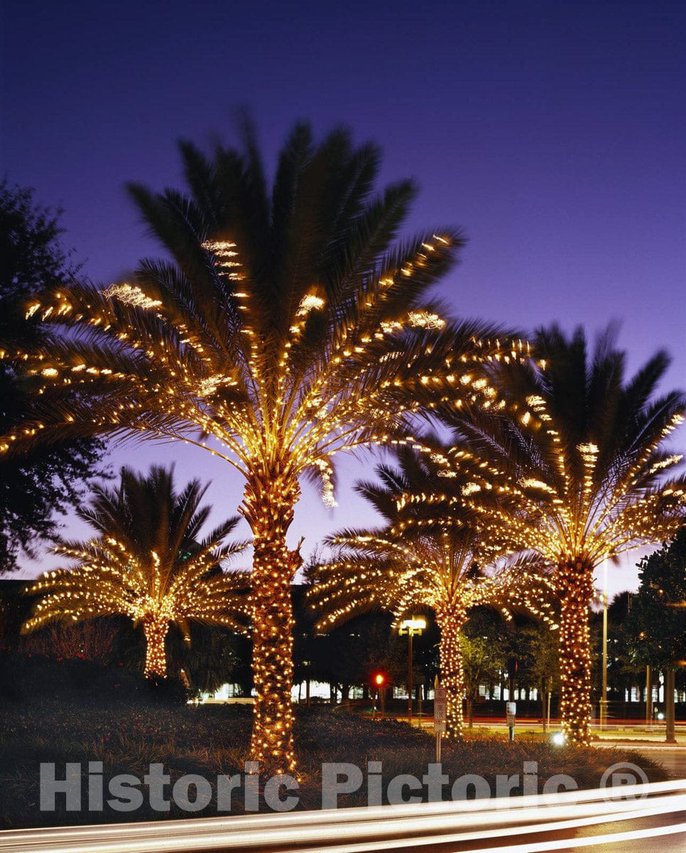 Twinkly Lights on The Palm Trees, Orlando, Florida