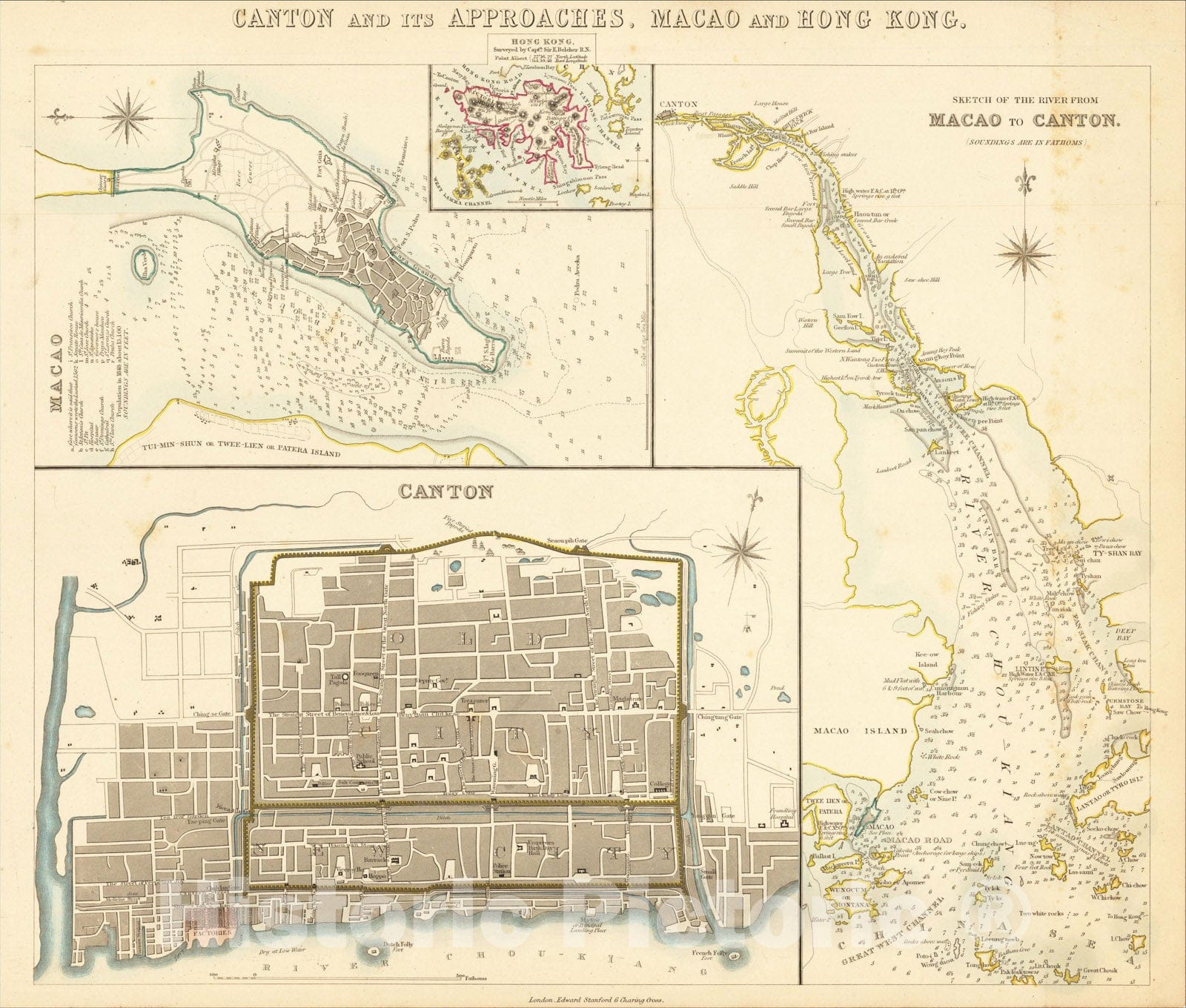 • .Historic Map : Canton and its Approaches, Macao and Hong Kong, 1852, SDUK, Vintage Wall Art