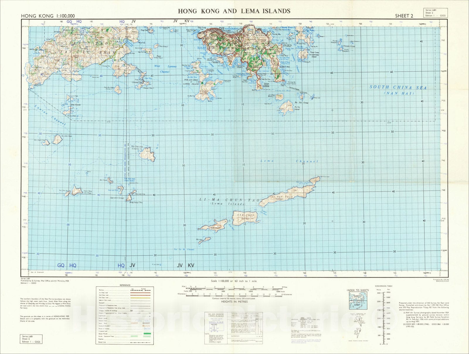 Hong Kong 1:100,000 Kowloon and The New Territories, 1958, War Office