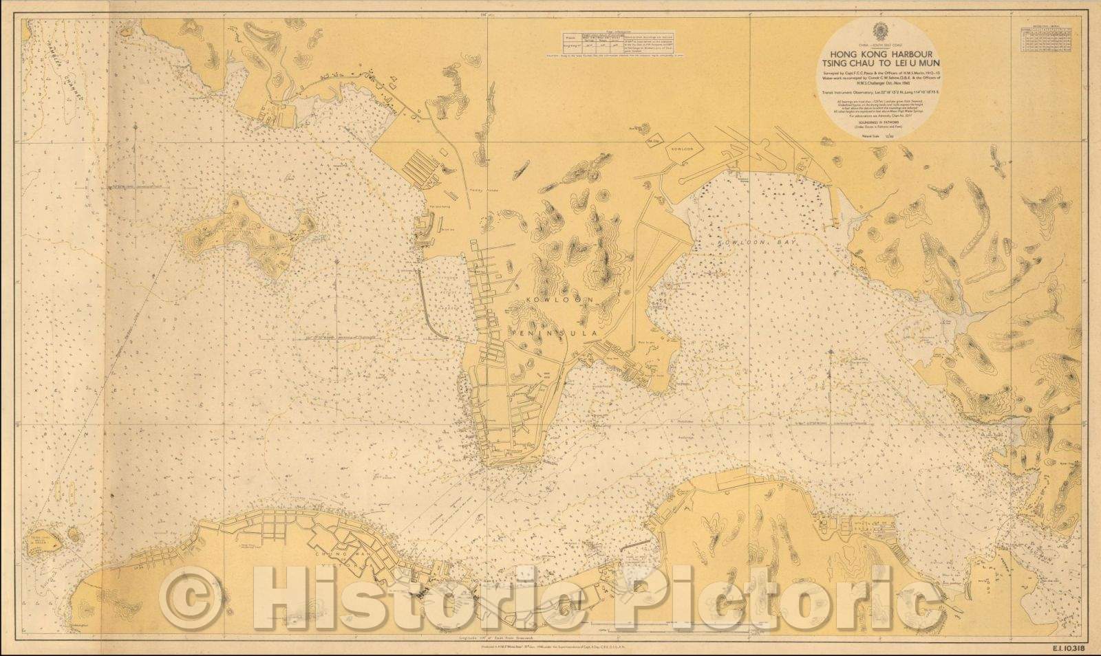 Historic Map - Hong Kong Harbour Tsing Chau To Lei U Mun Surveyed, 1946, Hydrographic Office East Indies Fleet - Vintage Wall Art