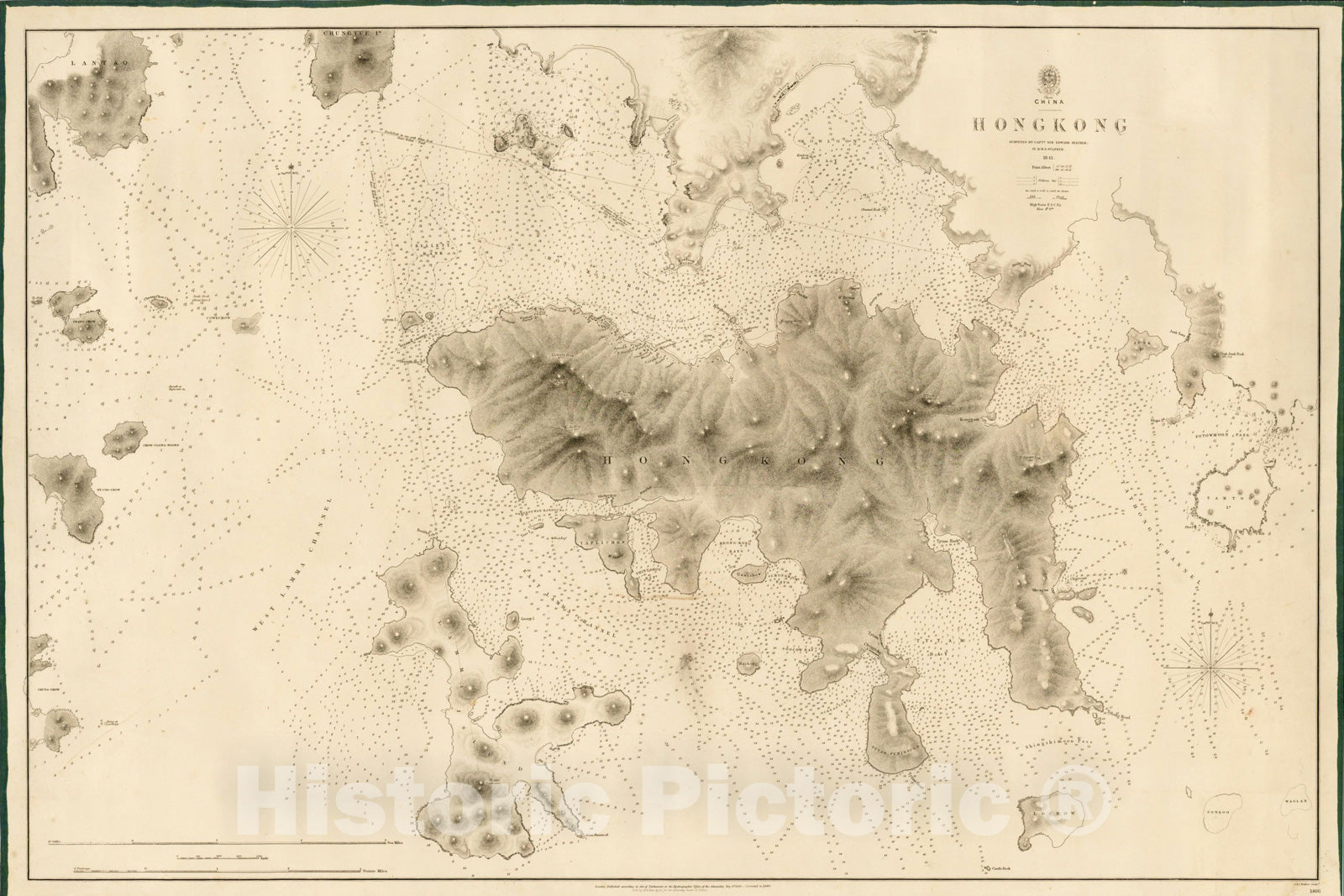 Historic Map : Hong Kong surveyed by Captn. Sir Edward Belcher, in H.M.S. Sulphur 1841, 1845, British Admiralty, v2, Vintage Wall Art