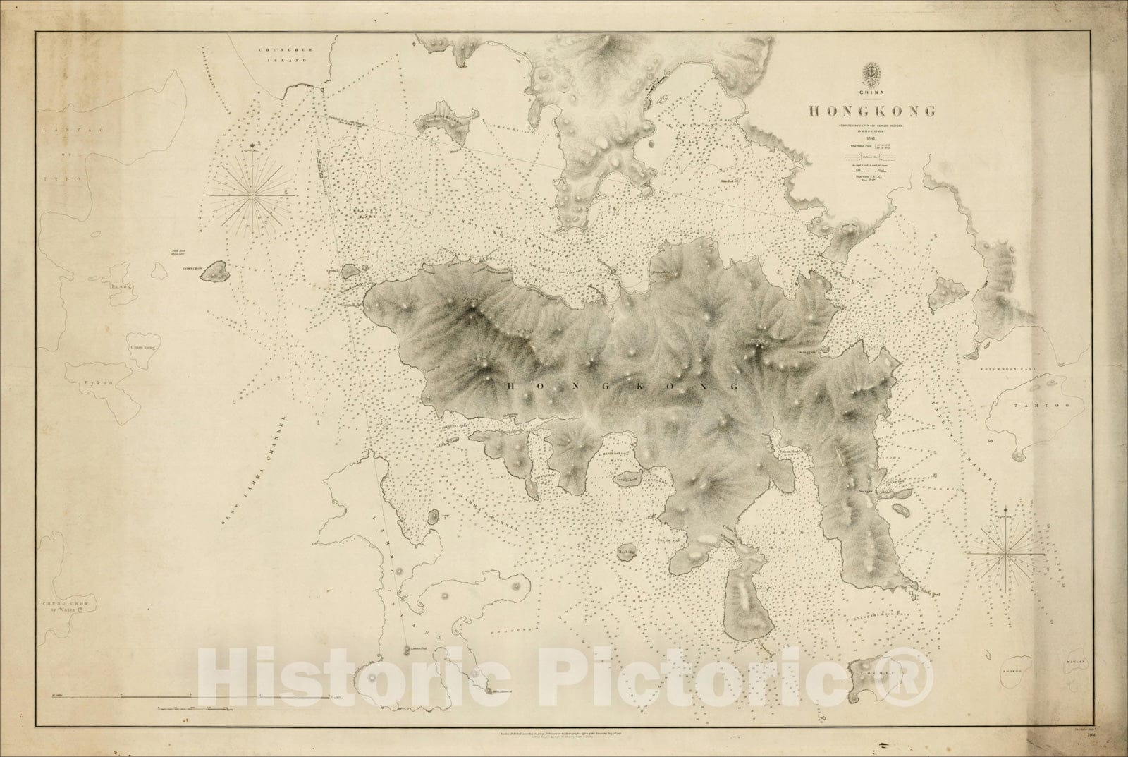 Historic Map : Hong Kong surveyed by Captn. Sir Edward Belcher, in H.M.S. Sulphur 1841, 1843, , Vintage Wall Art