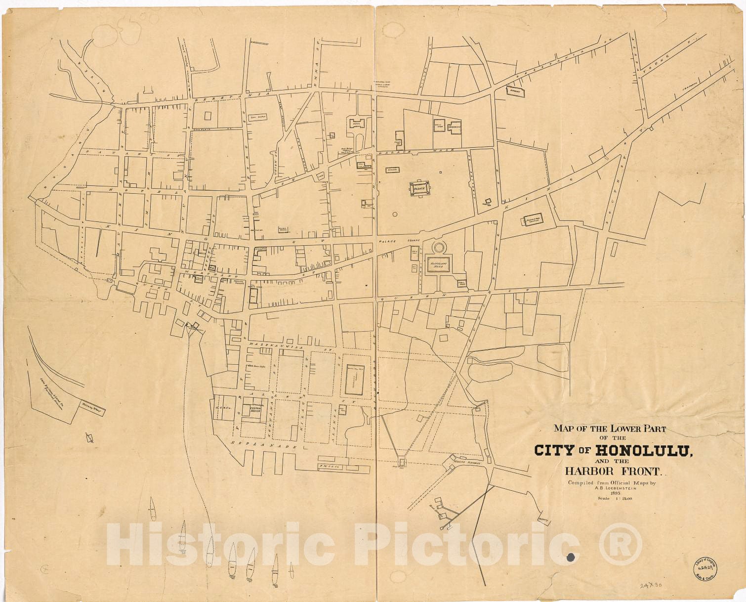 Historic 1893 Map - Map of The Lower Part of The City of Honolulu and The Harbor Front
