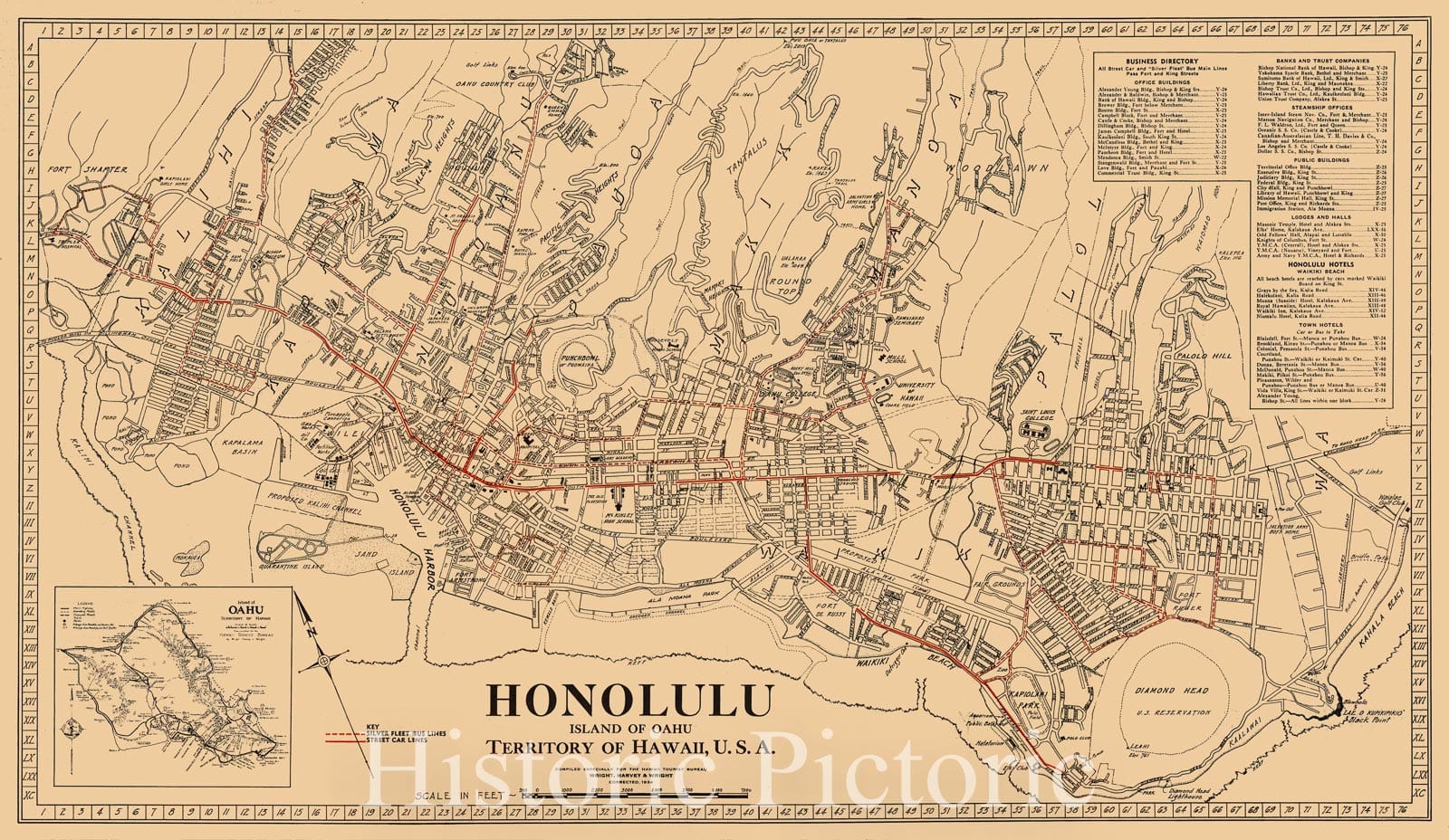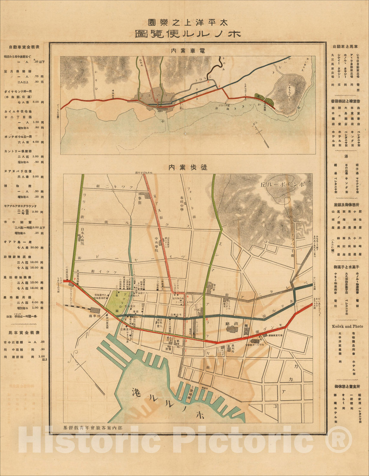Historic Map : How to See Honolulu. Honolulu: Young Men?s Christian Association (with early photos on the verso), c1885, Honolulu YMCA, Vintage Wall Art