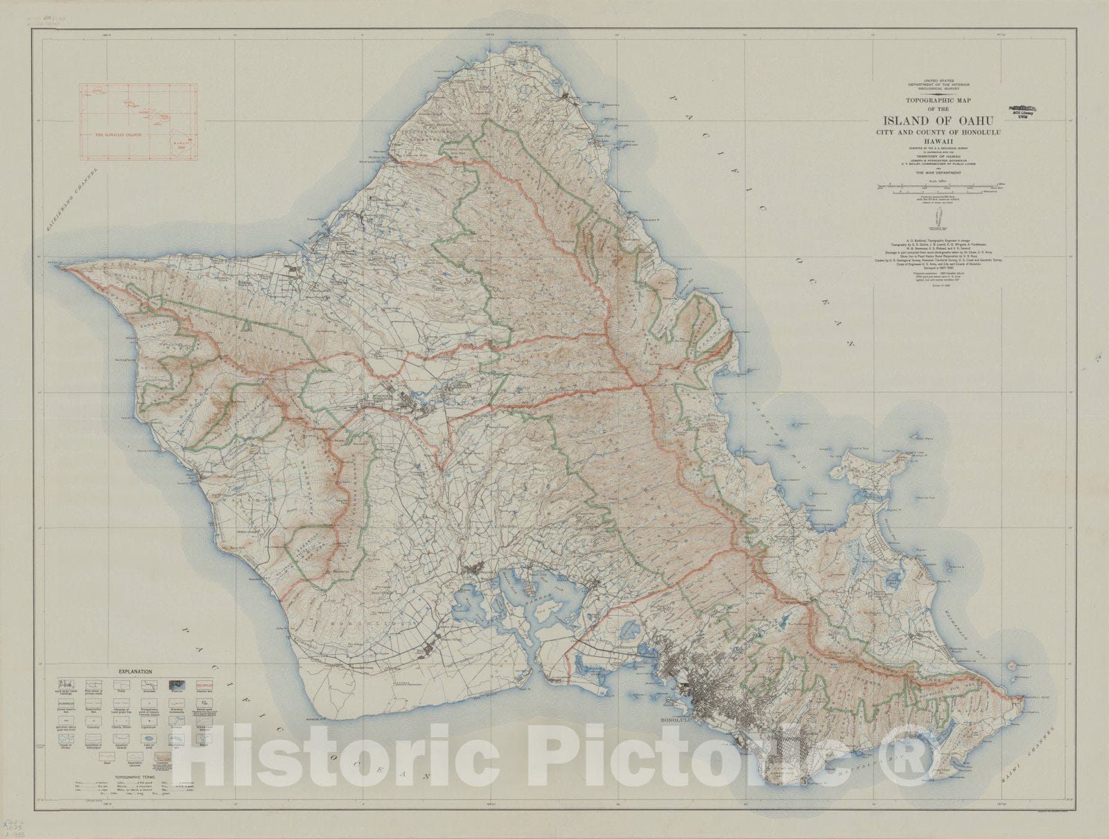 Topographic map of the Island of Oahu : city and county of Honolulu, Hawaii / surveyed by the U.S. Geological Survey ; in cooperation with the Territory of Hawaii ; and War Department