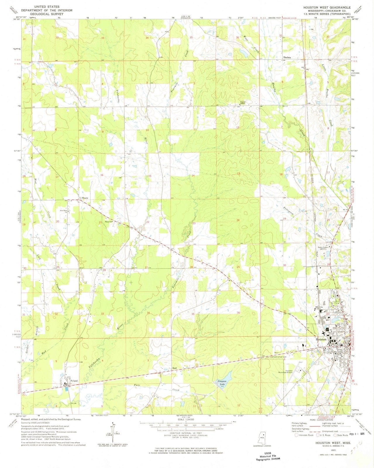 • 1972 Houston West, MS - Mississippi - USGS Topographic Map
