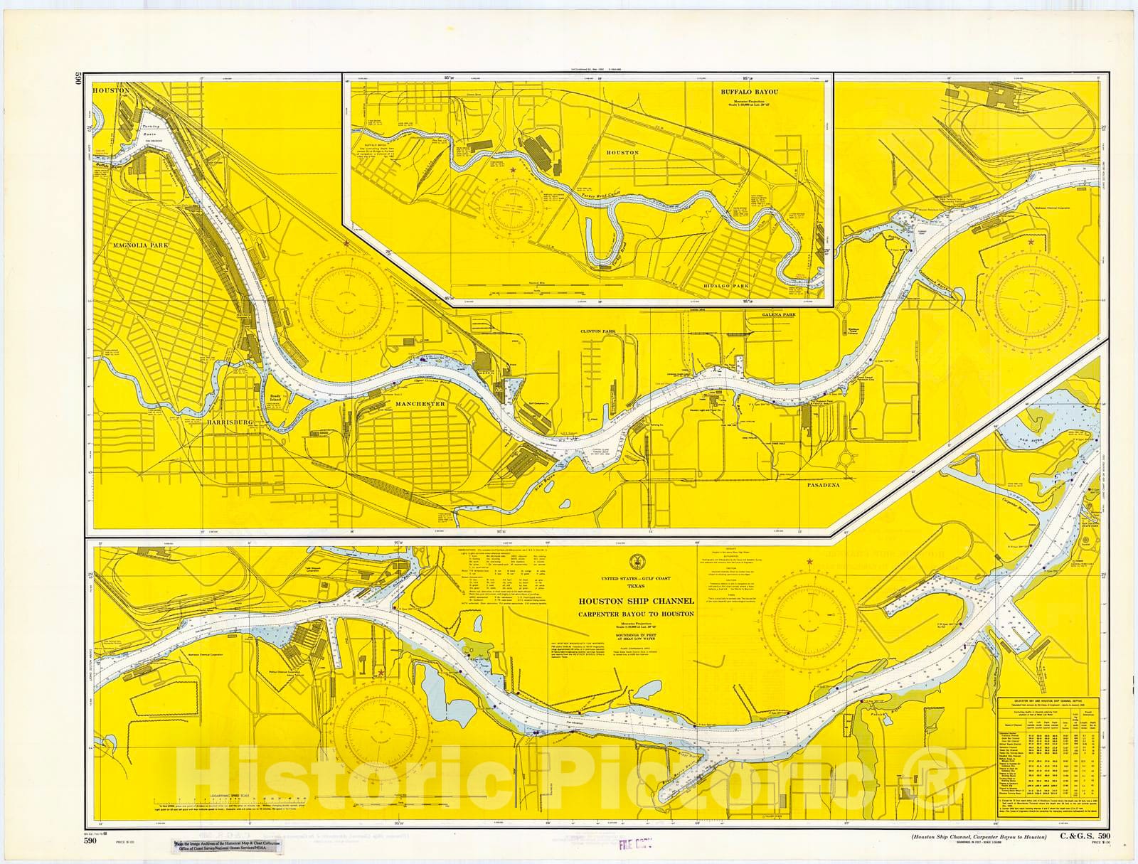 Historic Nautical Map - Houston Ship Channel, Carpenter Bayou To Houston, 1968 NOAA Chart - Texas (TX) - Vintage Wall Art